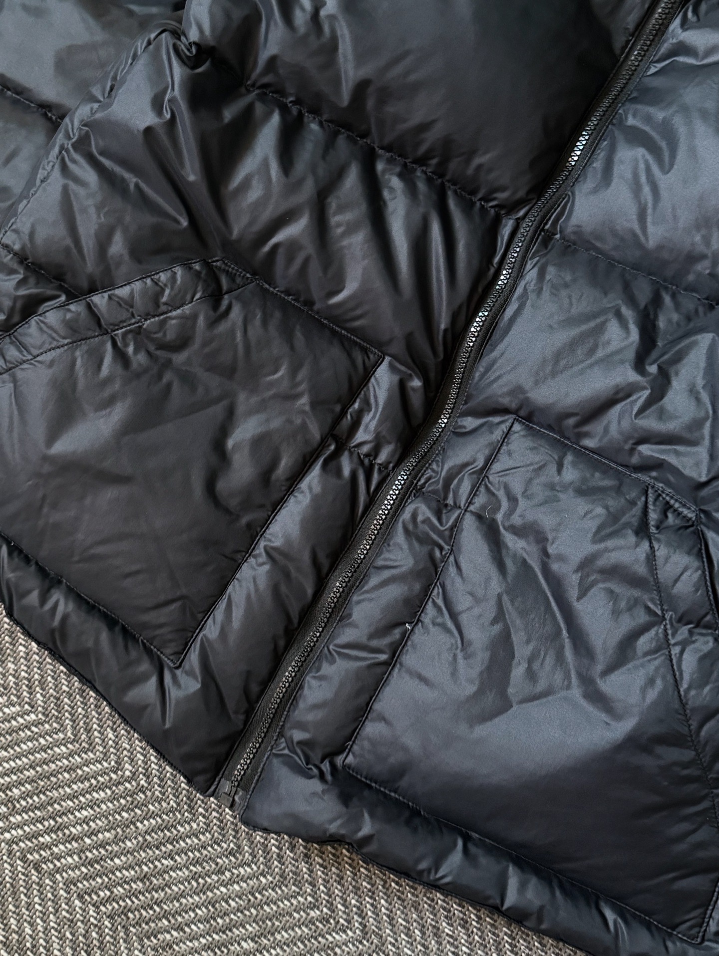 겉감은 광택감이 은은한 나일론 100% 소재로 제작되어 내풍성과 내습성이 뛰어나며, 빈티지 특유의 실키한 질감이 매력적입니다. 심플한 MA-1 타입의 보머 실루엣에 여유 있는 패턴이 더해져, 90년대 특유의 볼륨감 있는 핏을 연출합니다. 넥, 소매, 밑단에는 탄탄한 리브 밴딩이 적용되어 실루엣을 잡아주며, 전면의 대형 포켓 디테일이 실용성과 디자인 포인트를 동시에 더합니다. 전반적으로 하자 없는 매우 훌륭한 컨디션을 유지하고 있으며, 충전재의 우모량 또한 풍부합니다. 실측 105정도 되는 사이즈입니다.