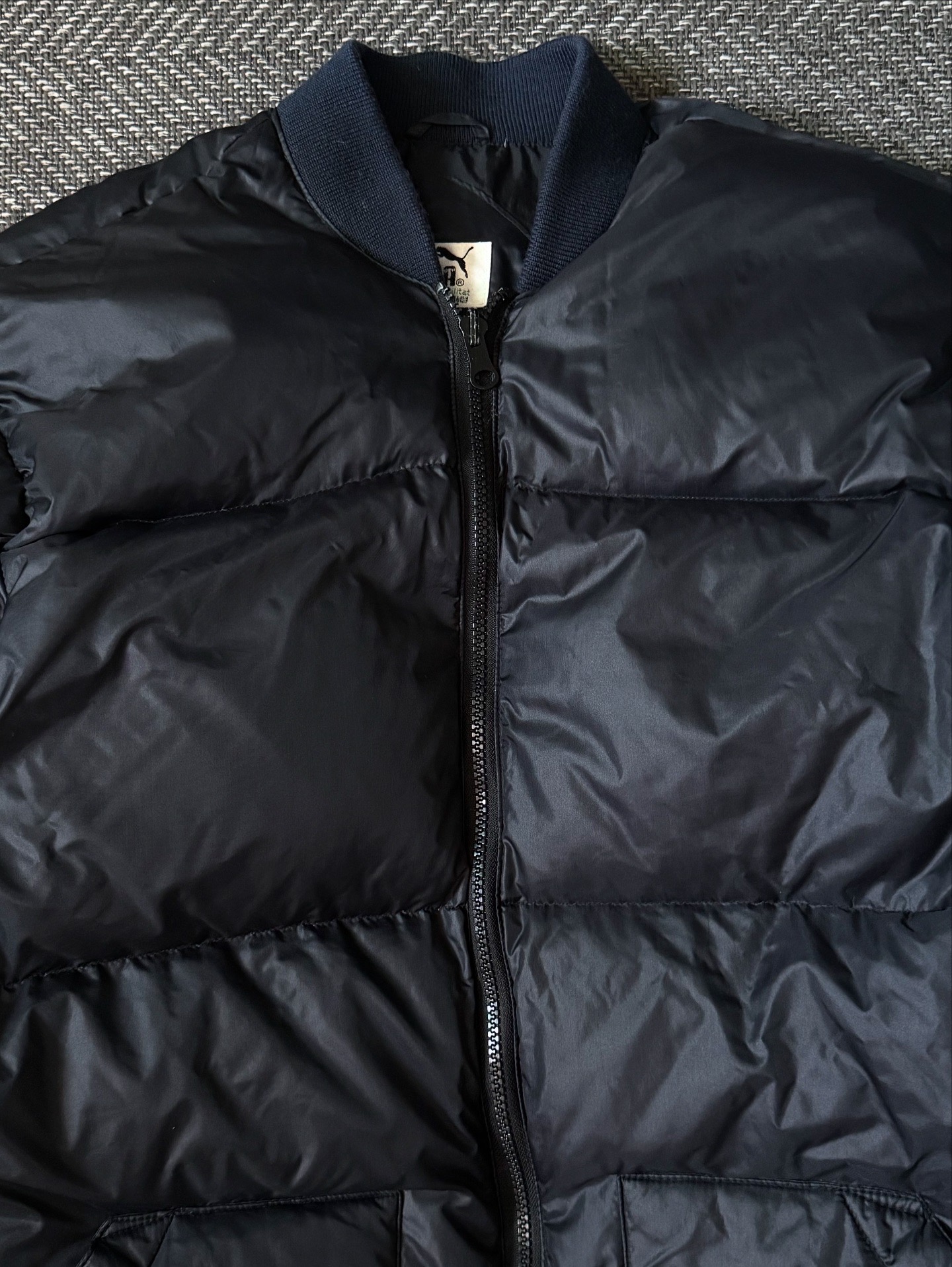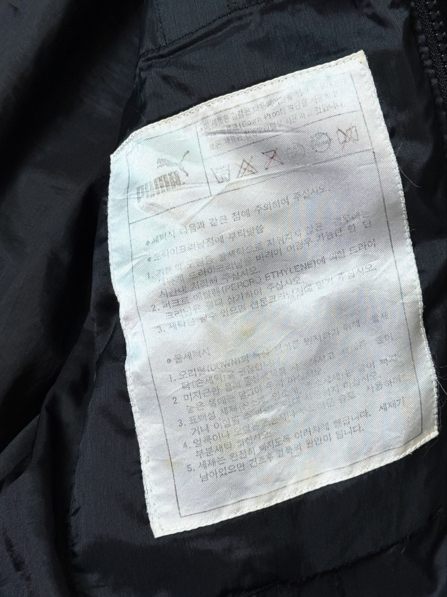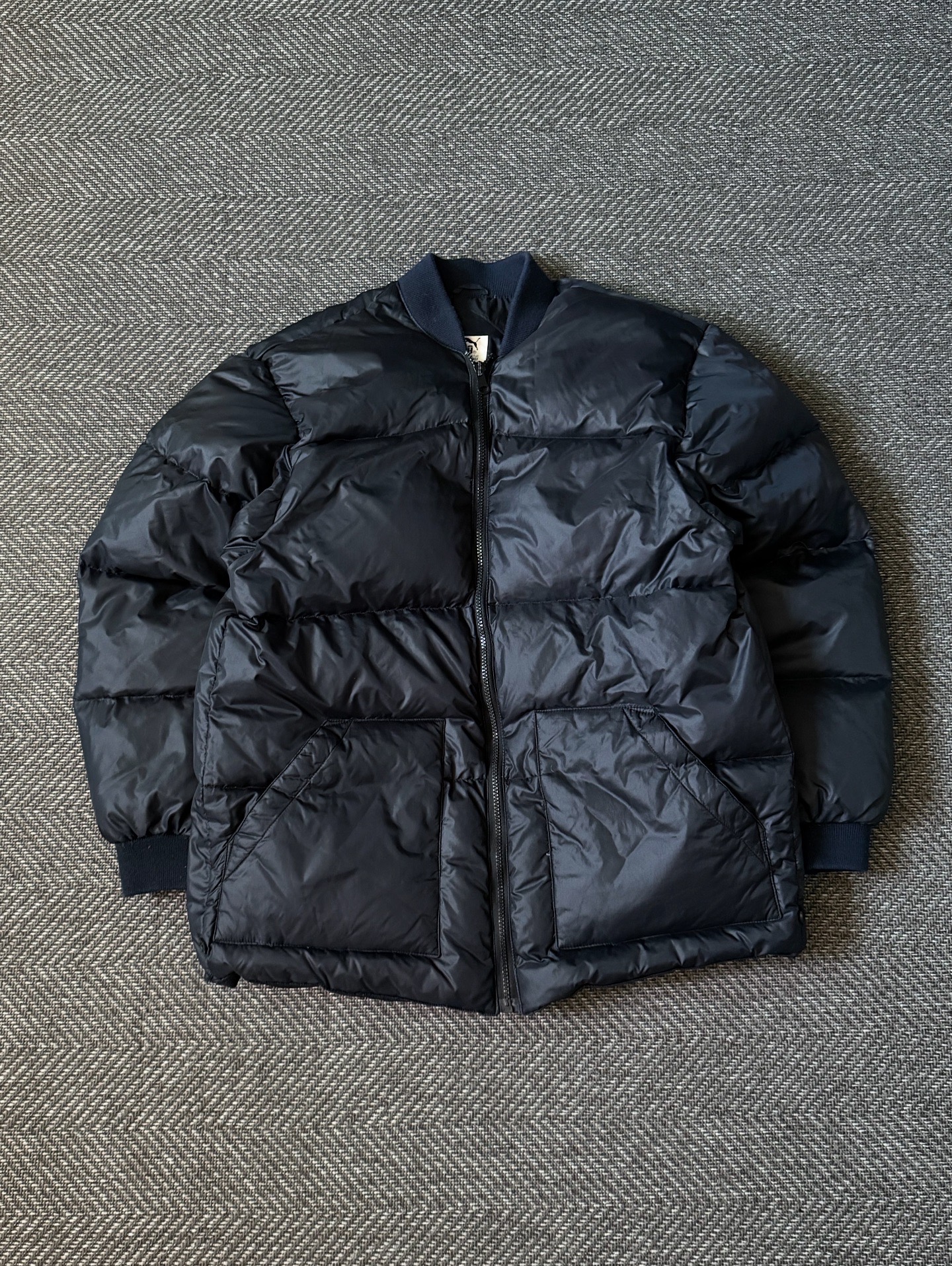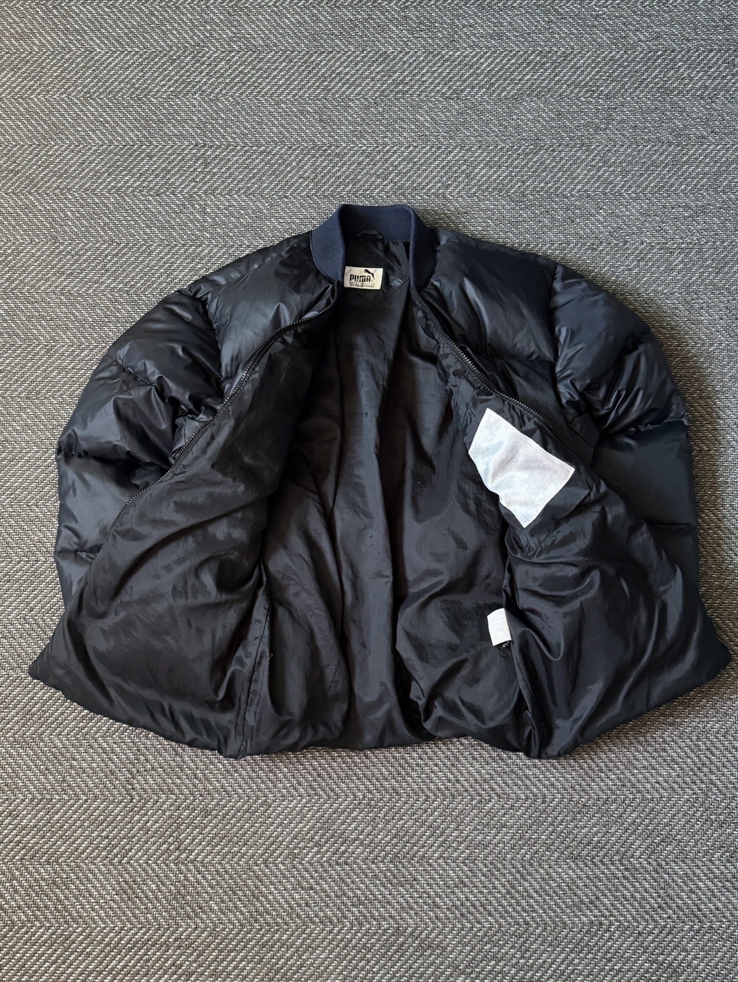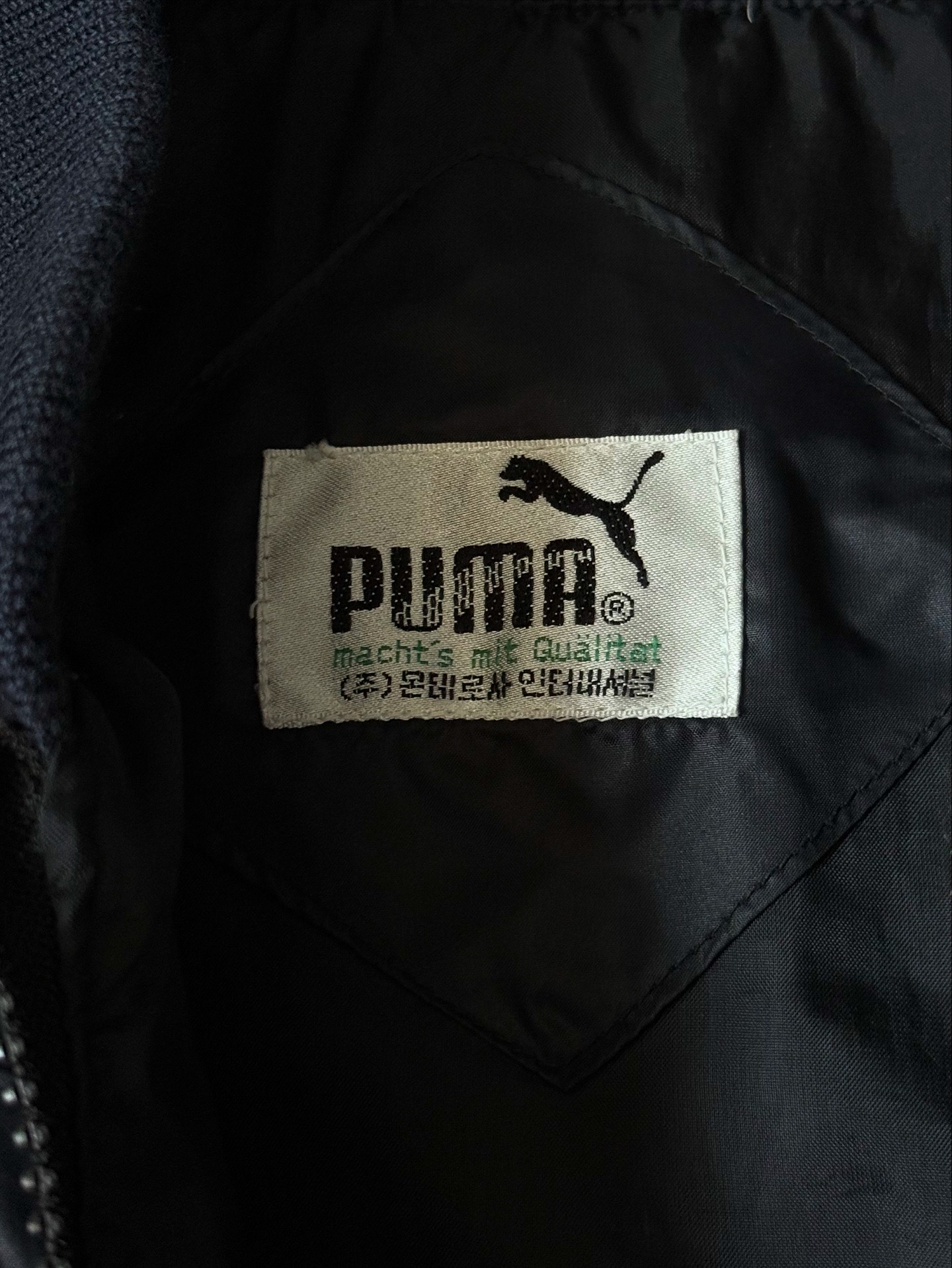 90년대 생산된 PUMA Oriental Down Bomber Jacket입니다. 한국 내 로컬 프로덕션 라인에서 제작된 모델로, 당시 퓨마 특유의 심플하면서도 기능적인 디자인 감성이 잘 담겨 있습니다. 보온성이 뛰어난 오리털(다운 80%, 깃털 20%) 충전재가 사용되어, 겨울철에도 가볍고 따뜻하게 착용할 수 있는 제품입니다.