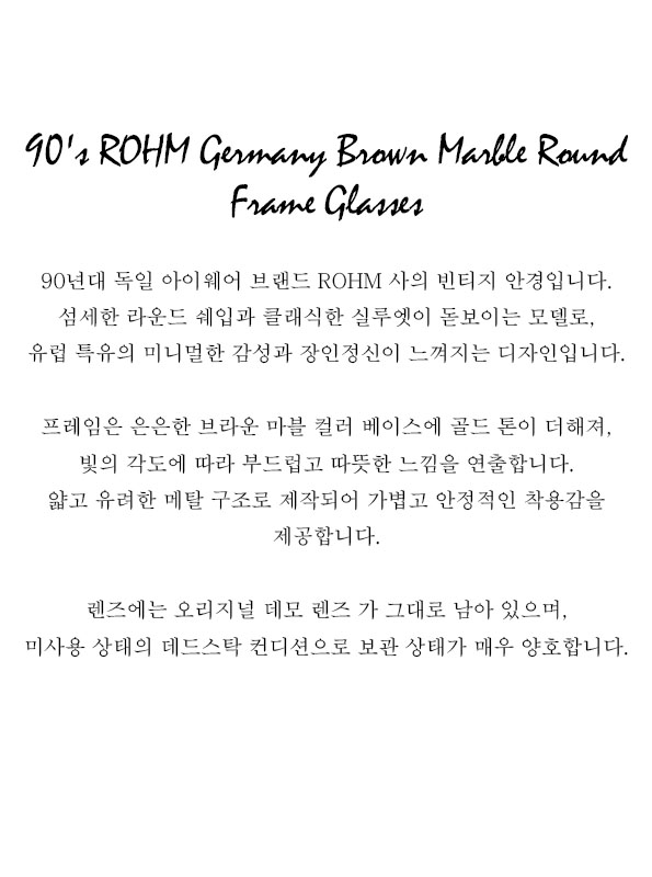 90's ROHM Germany Brown Marble Round Frame Glasses