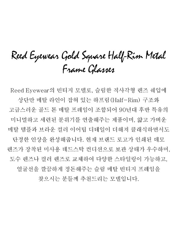 Reed Eyewear Gold Square Half-Rim Metal Frame Glasses
