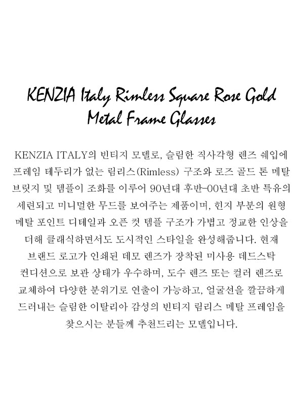 KENZIA Italy Rimless Square Rose Gold Metal Frame Glasses