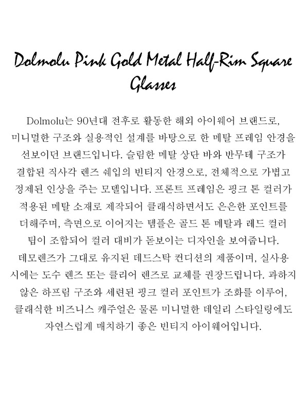 Dolmolu Pink Gold Metal Half-Rim Square Glasses