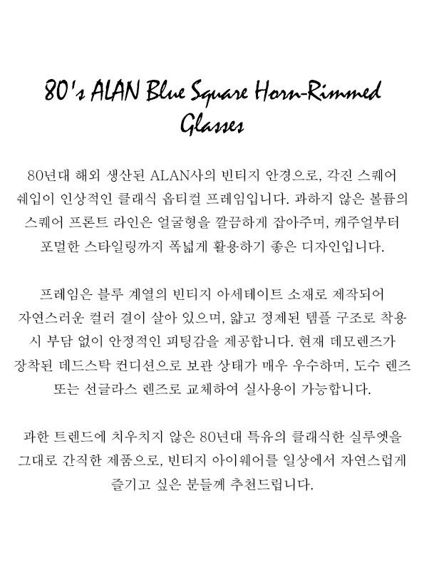 80's ELAN Blue Square Horn-Rimmed Glasses
