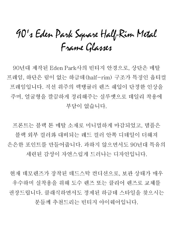 90's Eden Park Square Half-Rim Metal Frame Glasses