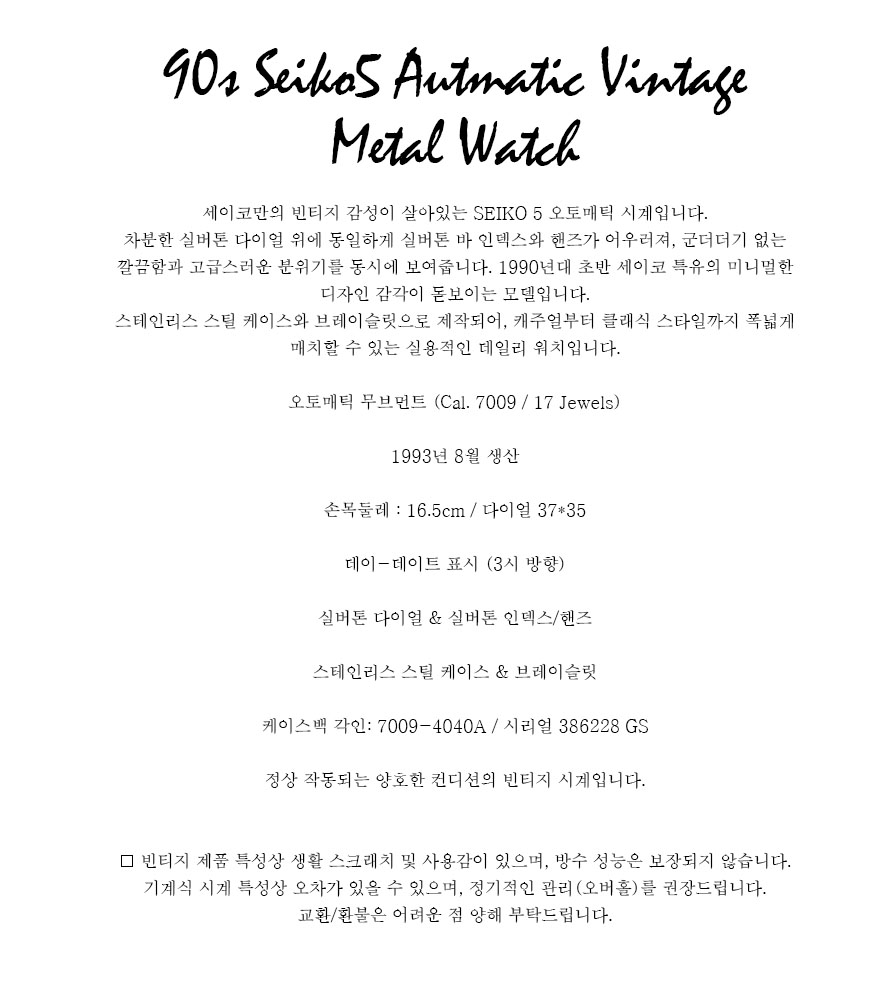 90s Seiko5 Automatic Vintage Metal Watch
