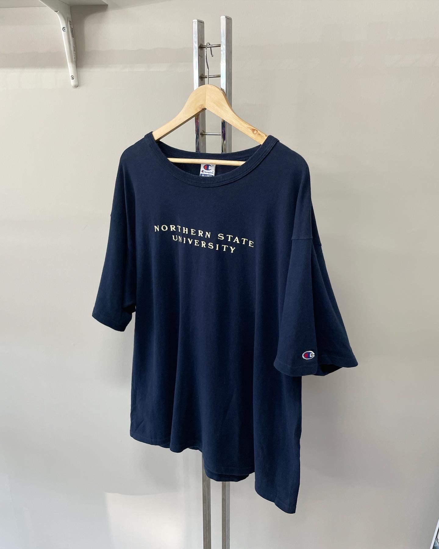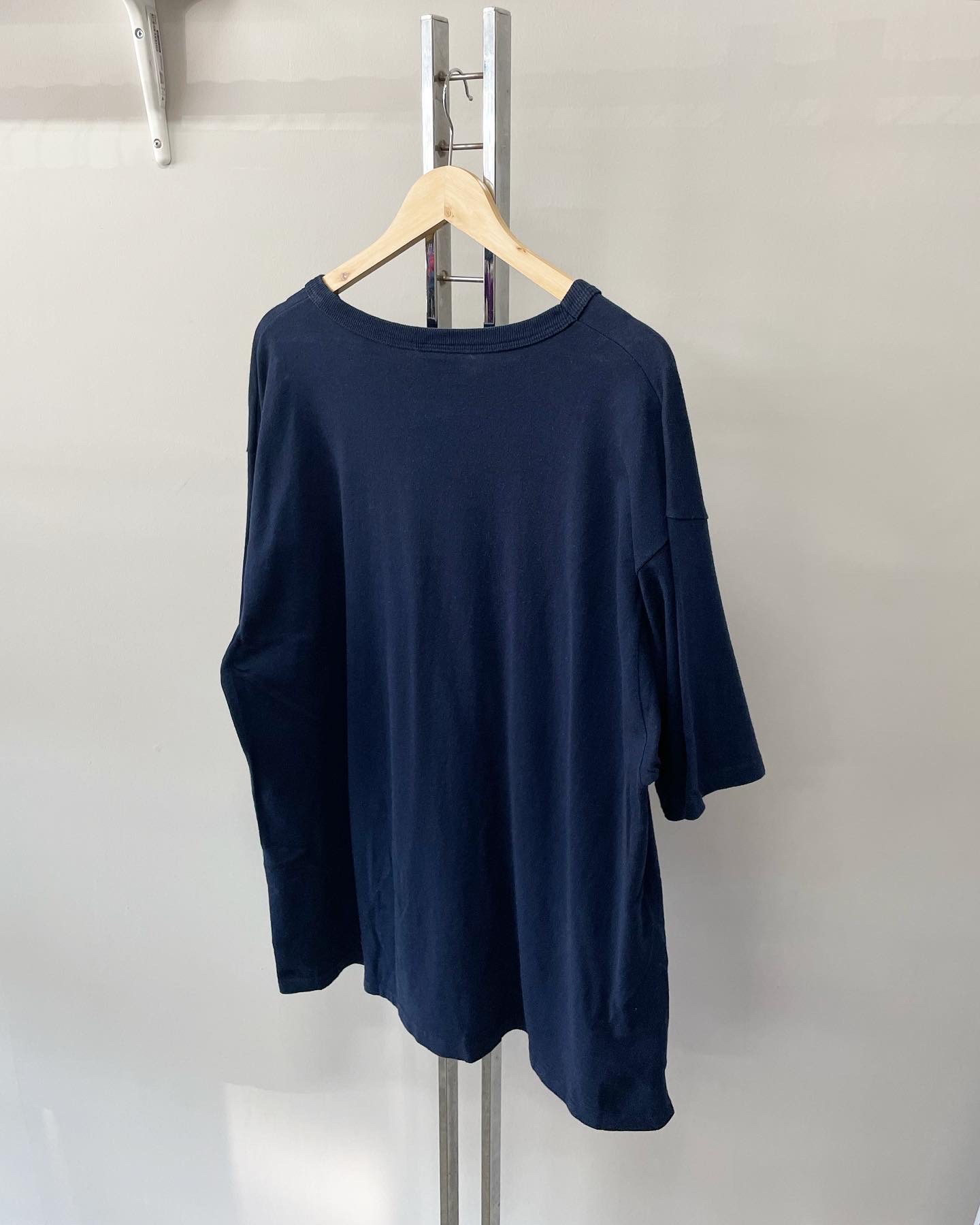 90년대 챔피온 빈티지 반팔 티셔츠입니다. 심플한 가슴 자수와 네이비 컬러감이 매력적인 제품이며 오버핏한 실루엣이 인상적입니다. 하자 및 데미지 없는 양호한 컨디션이며, 실측 105-110 정도 되는 사이즈감입니다.