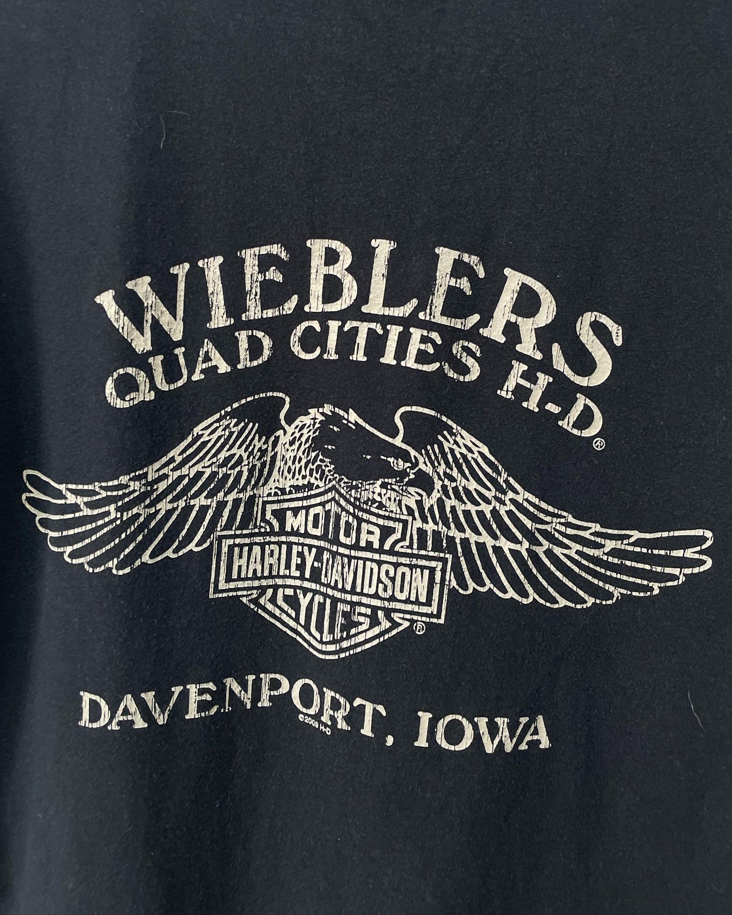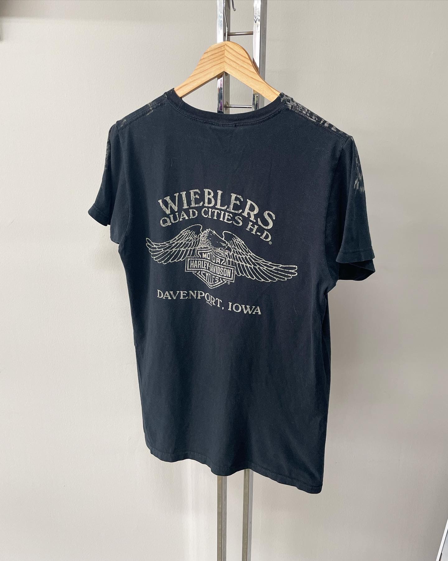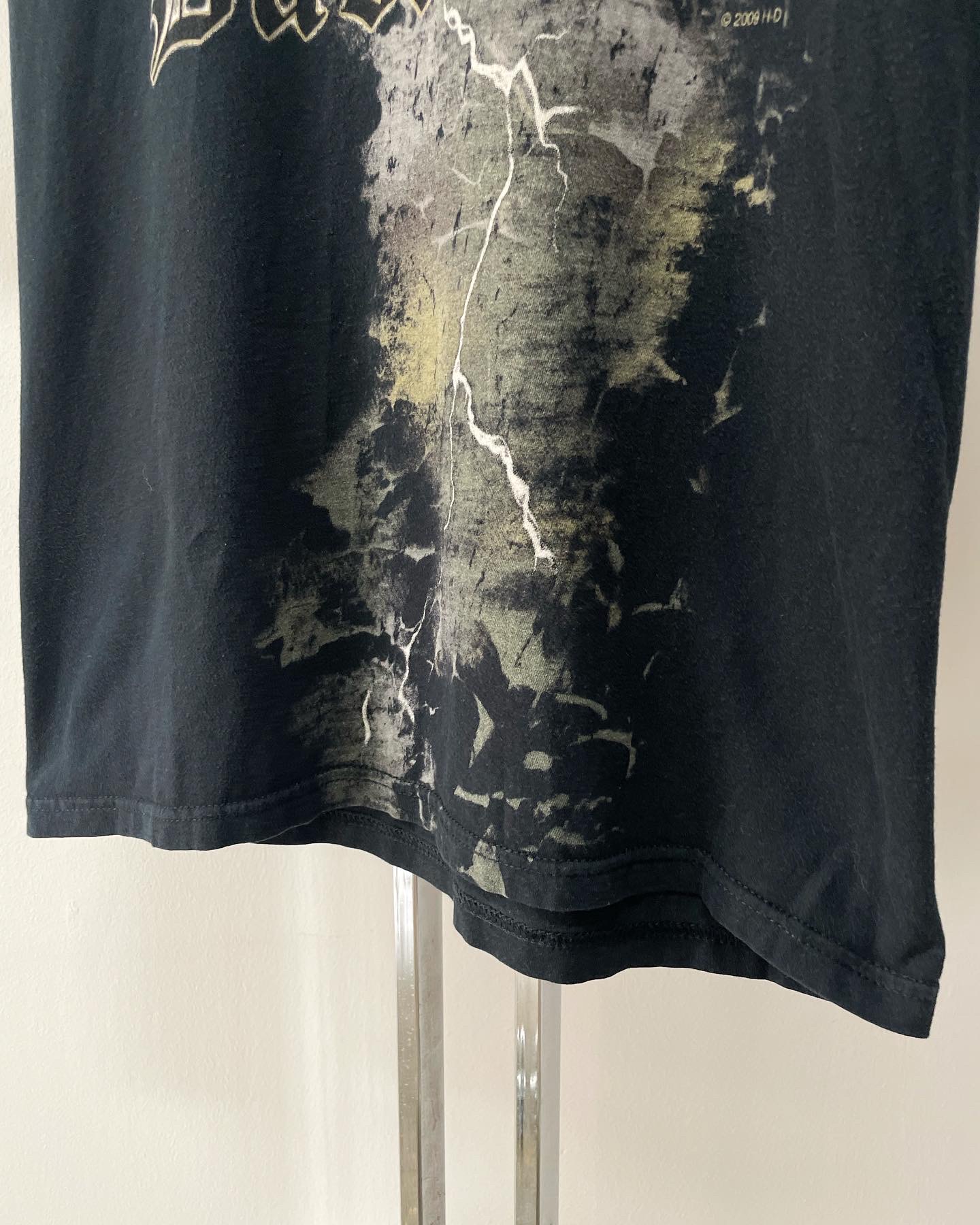 할리 데이비슨 오리지날 빈티지 티셔츠입니다. 멋스러운 라이트닝 스컬 프림팅이 매우 매력적이며 하자 및 데미지 없는 양호한 컨디션입니다. 실측 90-95 정도 되는 사이즈감입니다.
