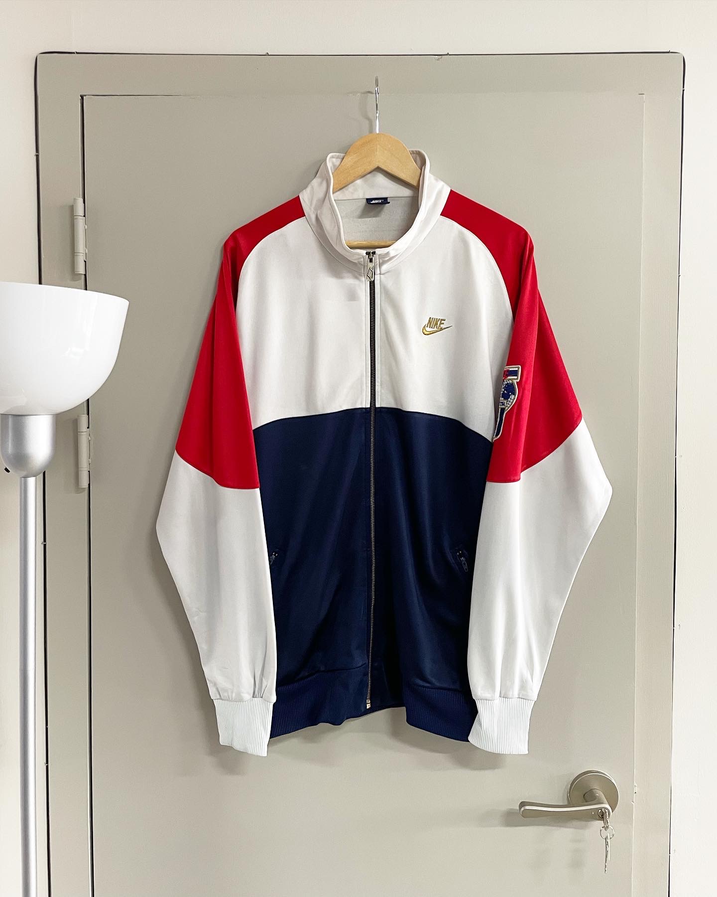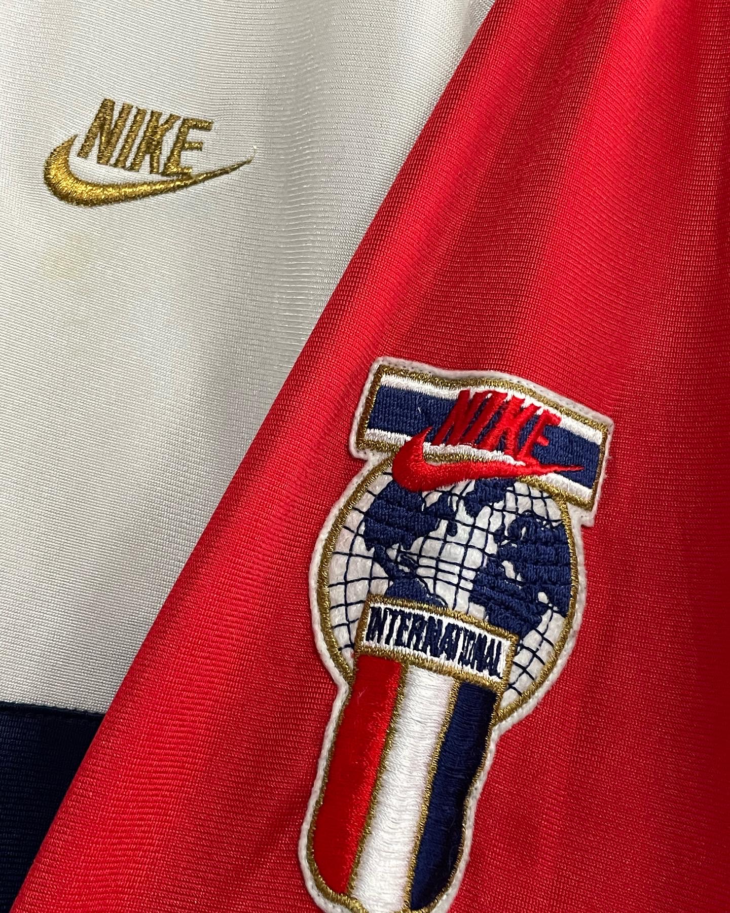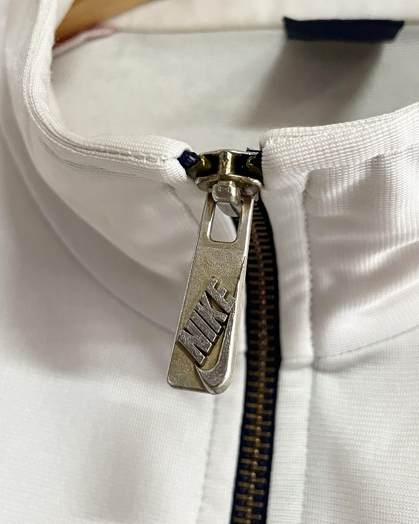 90년대 나이키 빈티지 트랙탑입니다. 90년대에서 볼 수 있는 올드지퍼와 소매에 인터내셔널 자수패치가 매력적이며, 앞면부 잘 보이지 않는 오염 외 준수한 컨디션 유지중입니다. 실측 105-108 정도 되는 사이즈감입니다.