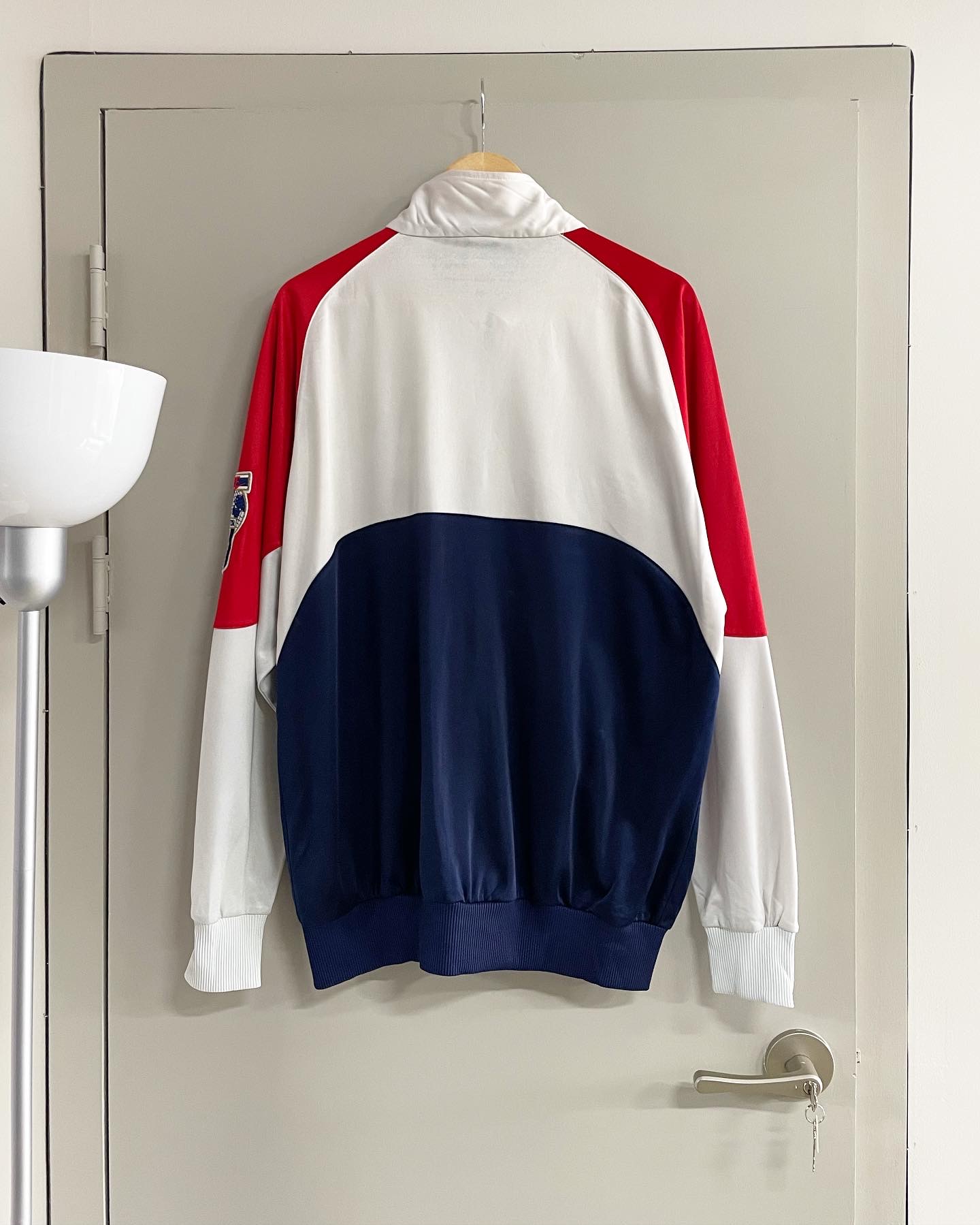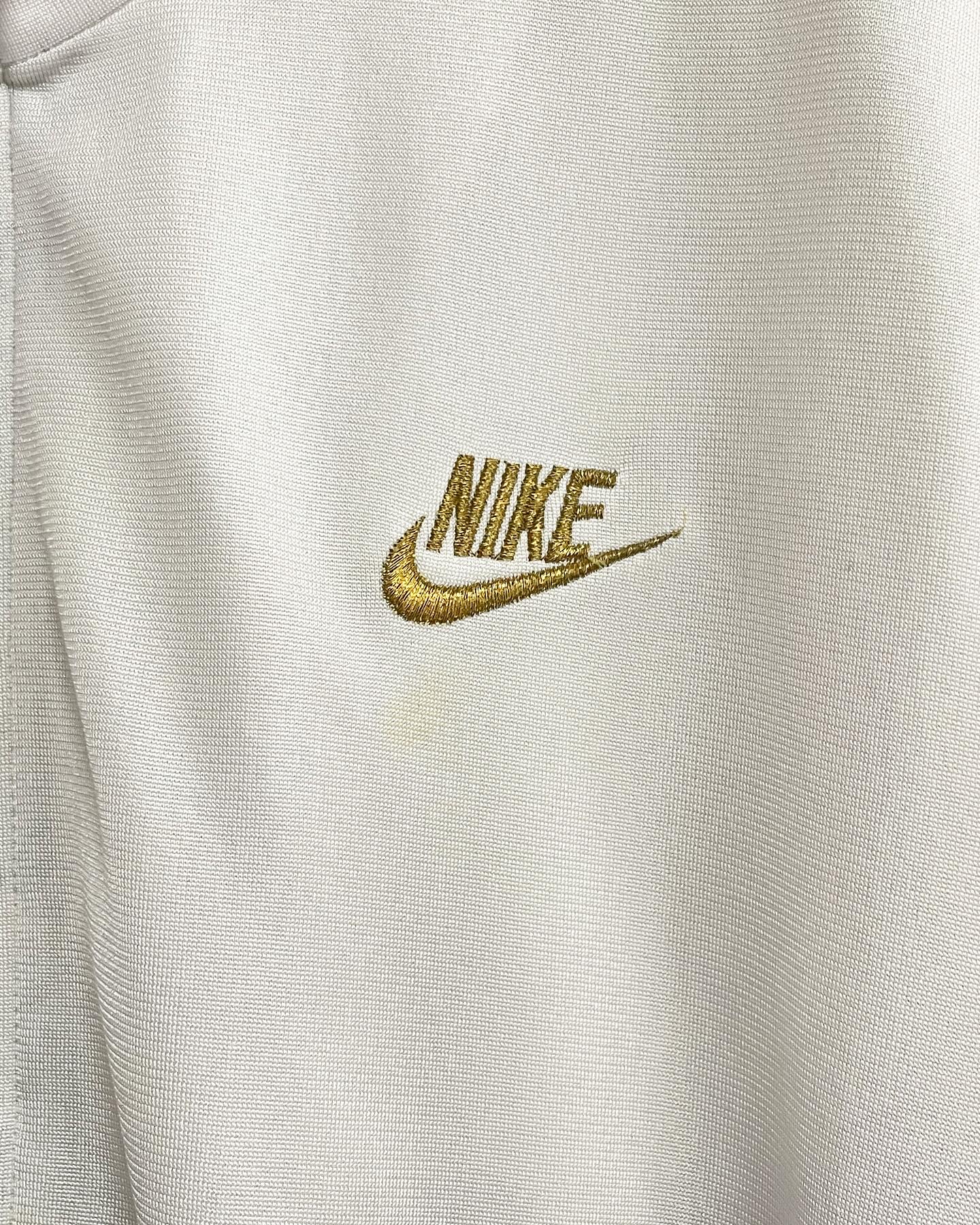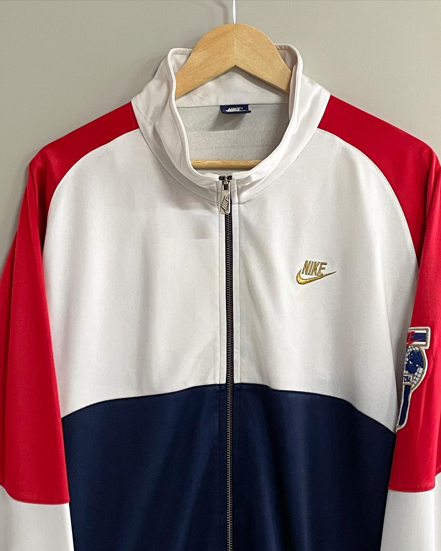 90년대 나이키 빈티지 트랙탑입니다. 90년대에서 볼 수 있는 올드지퍼와 소매에 인터내셔널 자수패치가 매력적이며, 앞면부 잘 보이지 않는 오염 외 준수한 컨디션 유지중입니다. 실측 105-108 정도 되는 사이즈감입니다.