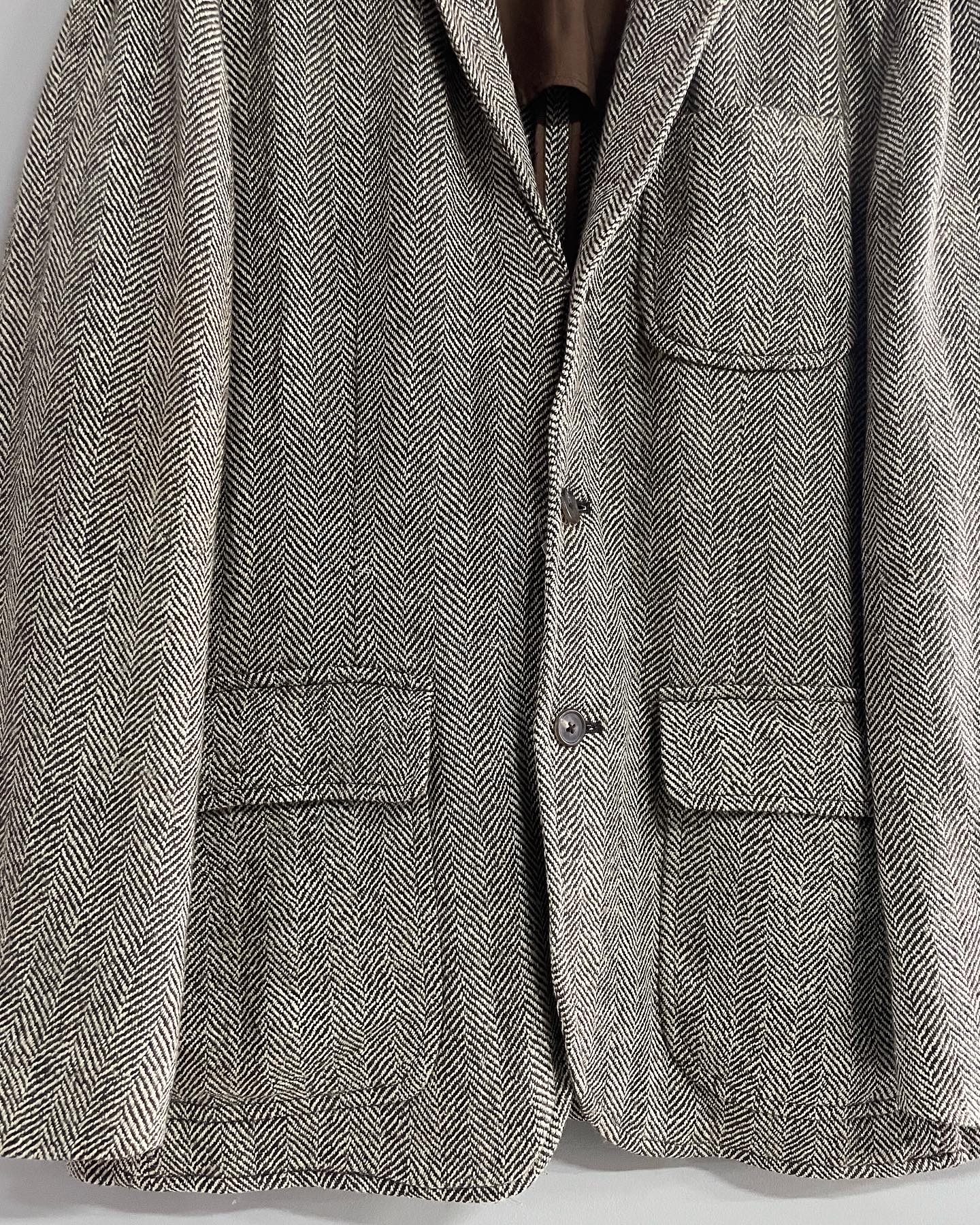 폴로 랄프로렌 3버튼 헤링본 트위드 자켓입니다. 가을 겨울에 빠질 수 없는 헤링본 패턴으로 클래식하면서 캐주얼한 무드로 재밌게 입을 수 있는 자켓입니다. 하자 및 데미지 없는 양호한 컨디션이며, 실측 105-108 정도 되는 사이즈감입니다.