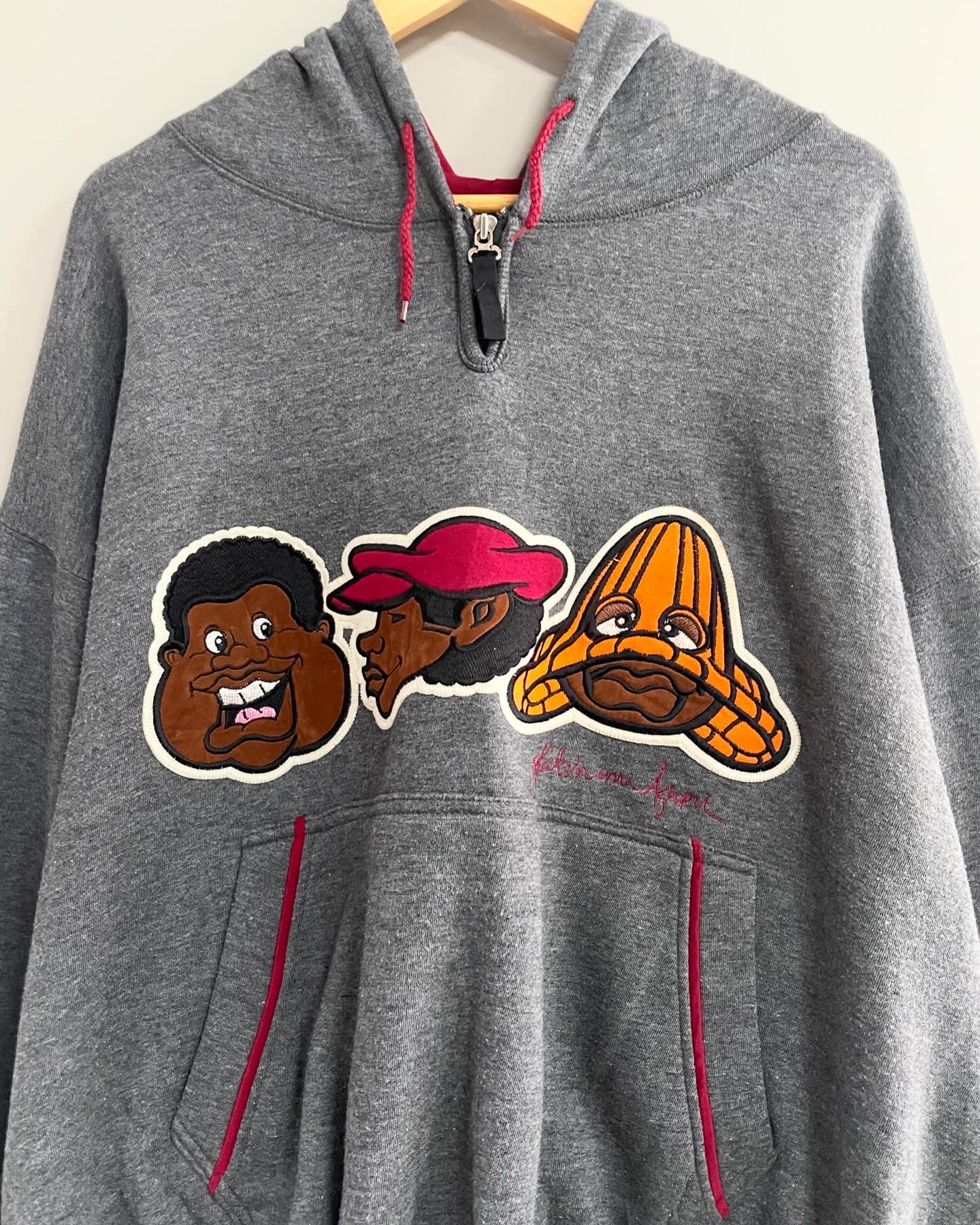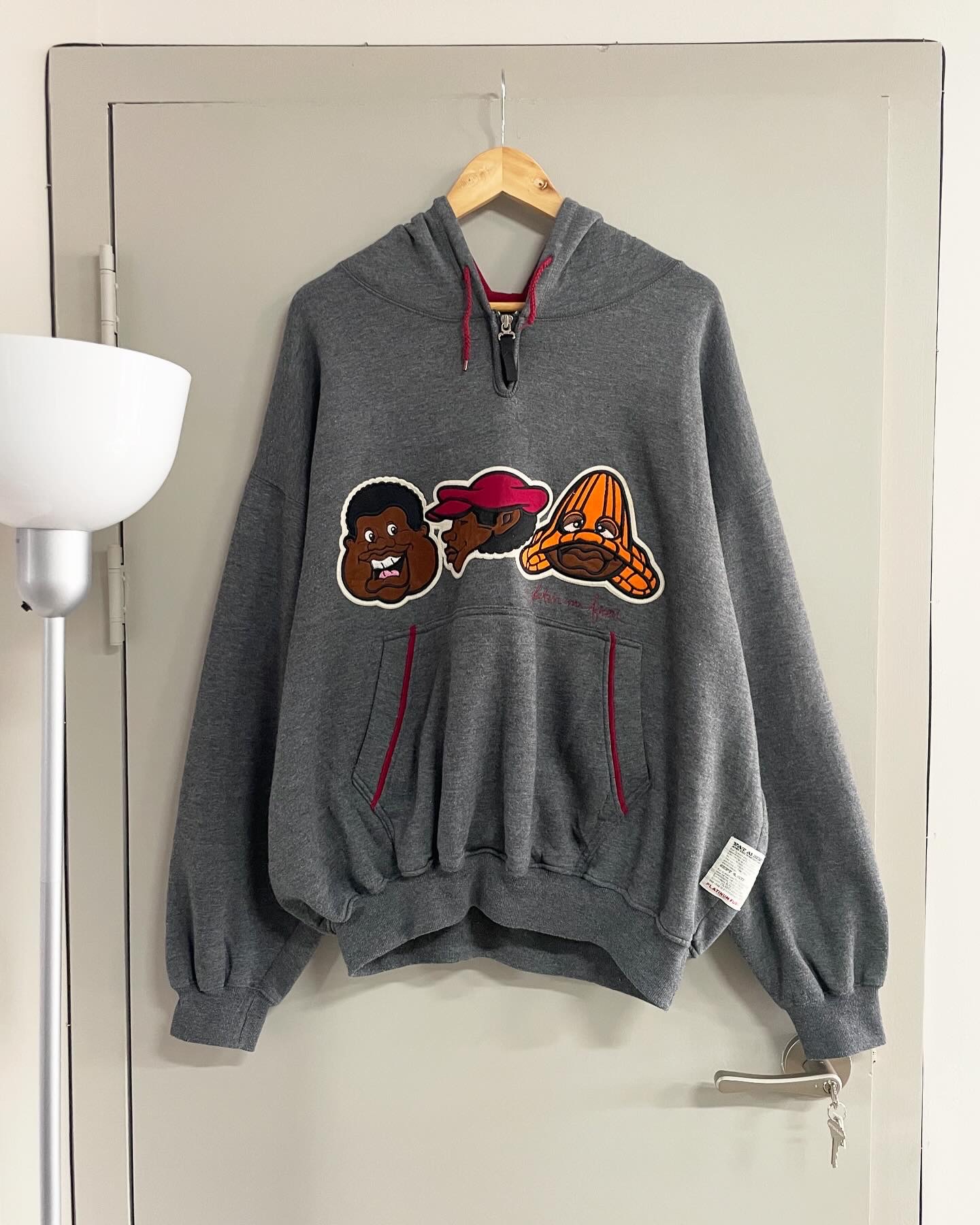 1세대 올드스쿨 힙합 브랜드 FUBU사의 고가 라인 Platinum Fubu 의 올드스쿨 후디 스웻입니다. 매우 오버핏한 실루엣과 올드스쿨한 자수가 매력적인 제품이며, 뒷면 필기체 자수도 인상적입니다. 하자 없는 양호한 컨디션이며, 실측 110정도 되는 사이즈감입니다.