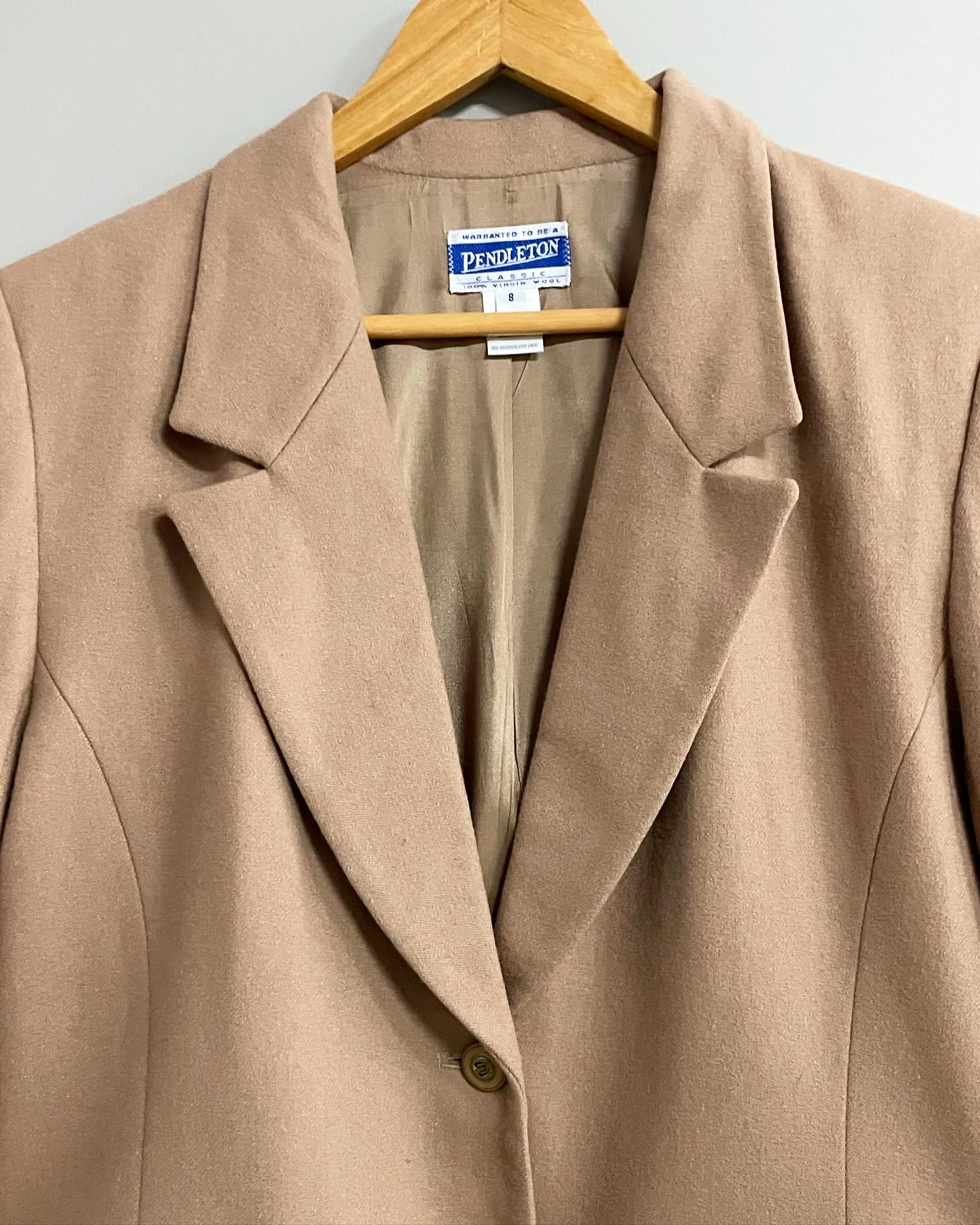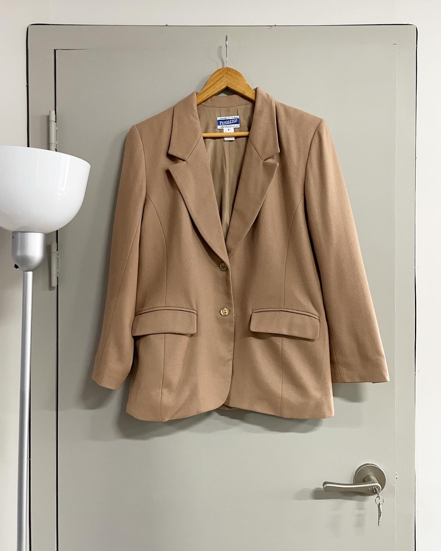 미국 전통 브랜드 펜들턴 90년대 생산된 Made in USA 울 우먼스 블레이저 자켓입나다. 개인적으로 좋아하는 디테일을 다 가지고 있습니다. 와이드 라펠, 클래식하면서 세련된 버튼 디자인, 그리고 겨드랑이 부터 하단까지 이어지는 라인이 조금더 핏을 돋보이게 해주는게, 여성분께서 살짝 오버허게 착용하시면 매우 멋질 것 같습니다. 하자 없는 양호한 컨디션, 실측 우먼스 44-55 정도 되는 사이즈감입니다.