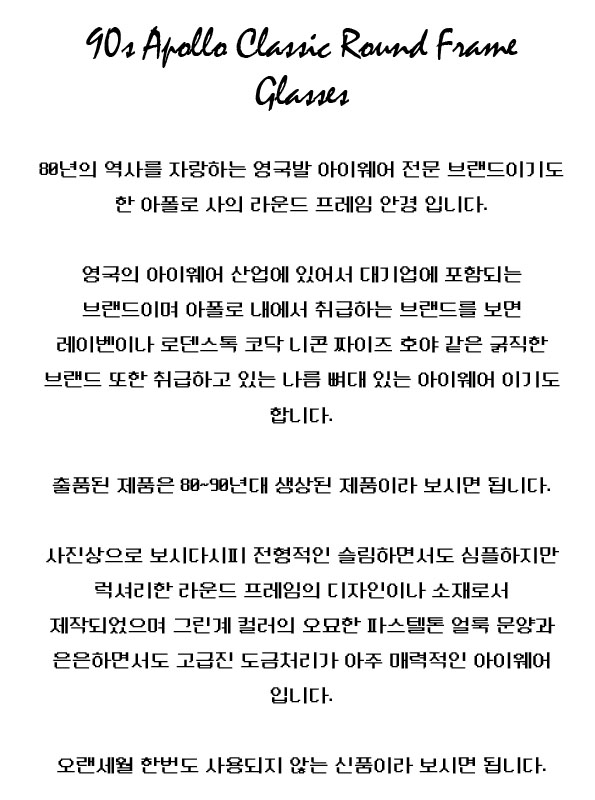 90s Apollo Classic Round Frame Glasses