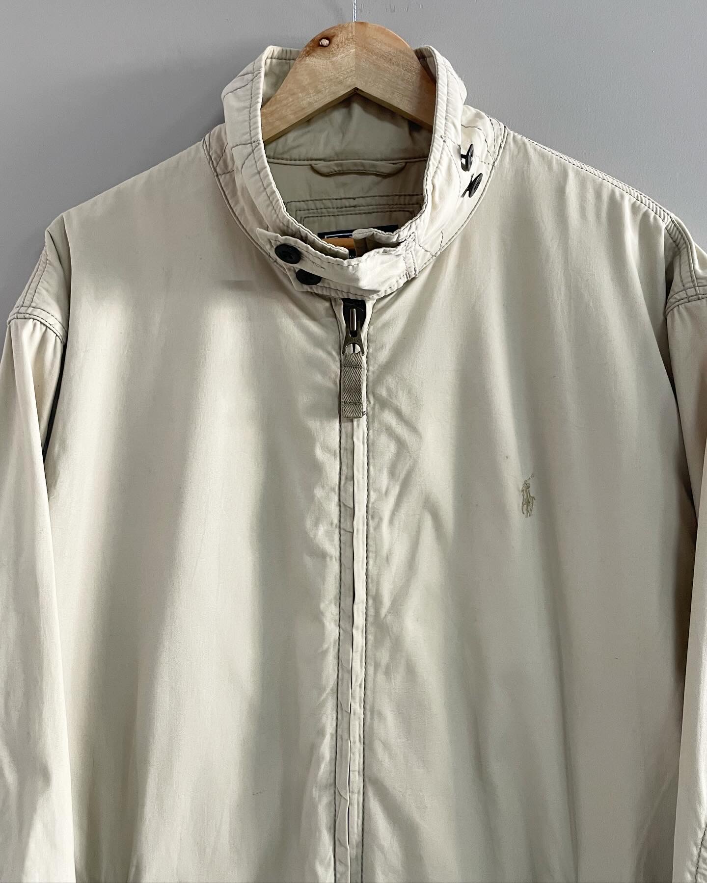 90년재 폴로 랄프로렌의 해링턴 자켓입니다. 코튼 소재의 베이지 컬러와 디테일들이 매력적인 제품입니다. 잘 안보이는 미세한 오염 외 양호한 컨디션이며, 실측 105-110 정도 되는 사이즈감입니다.