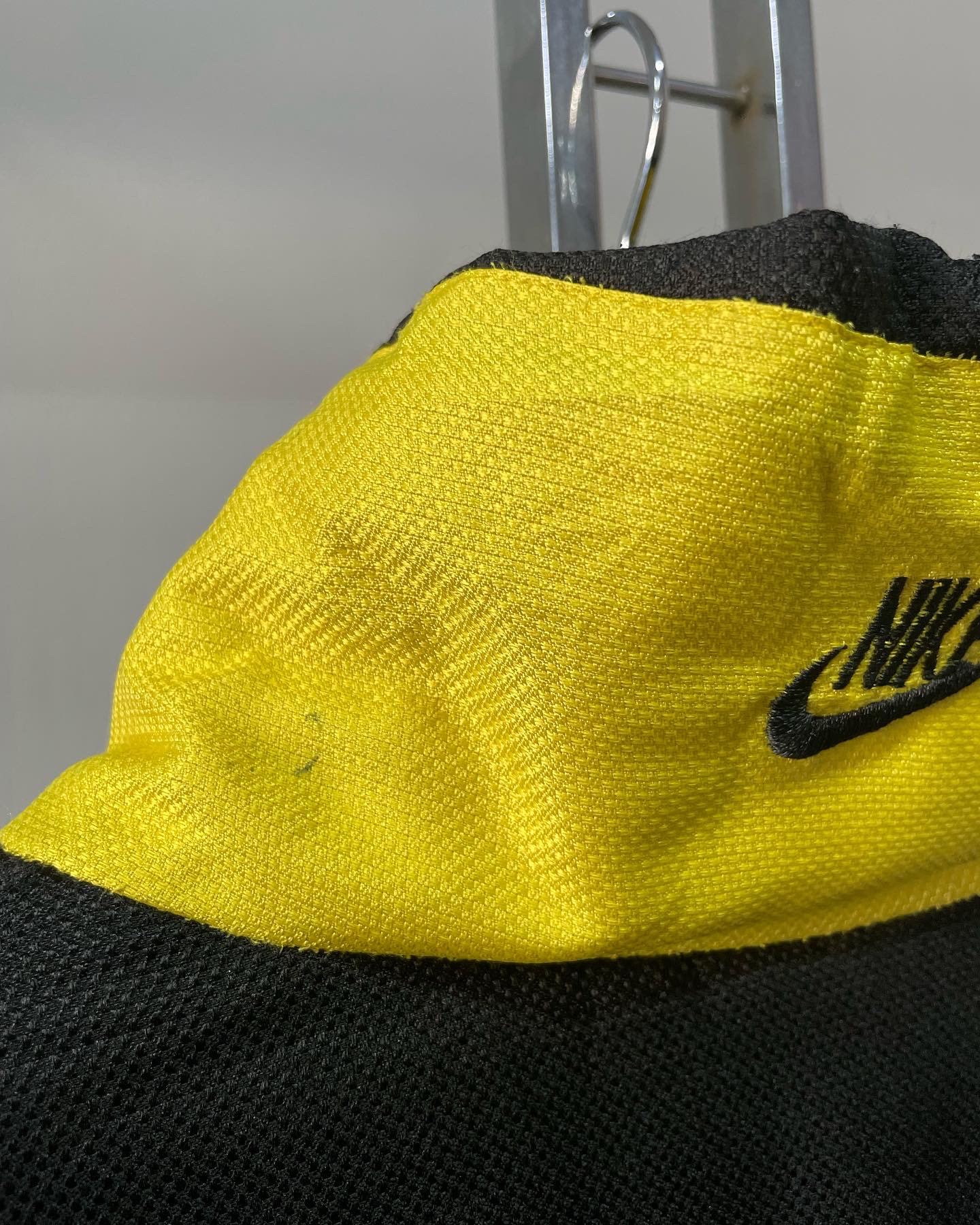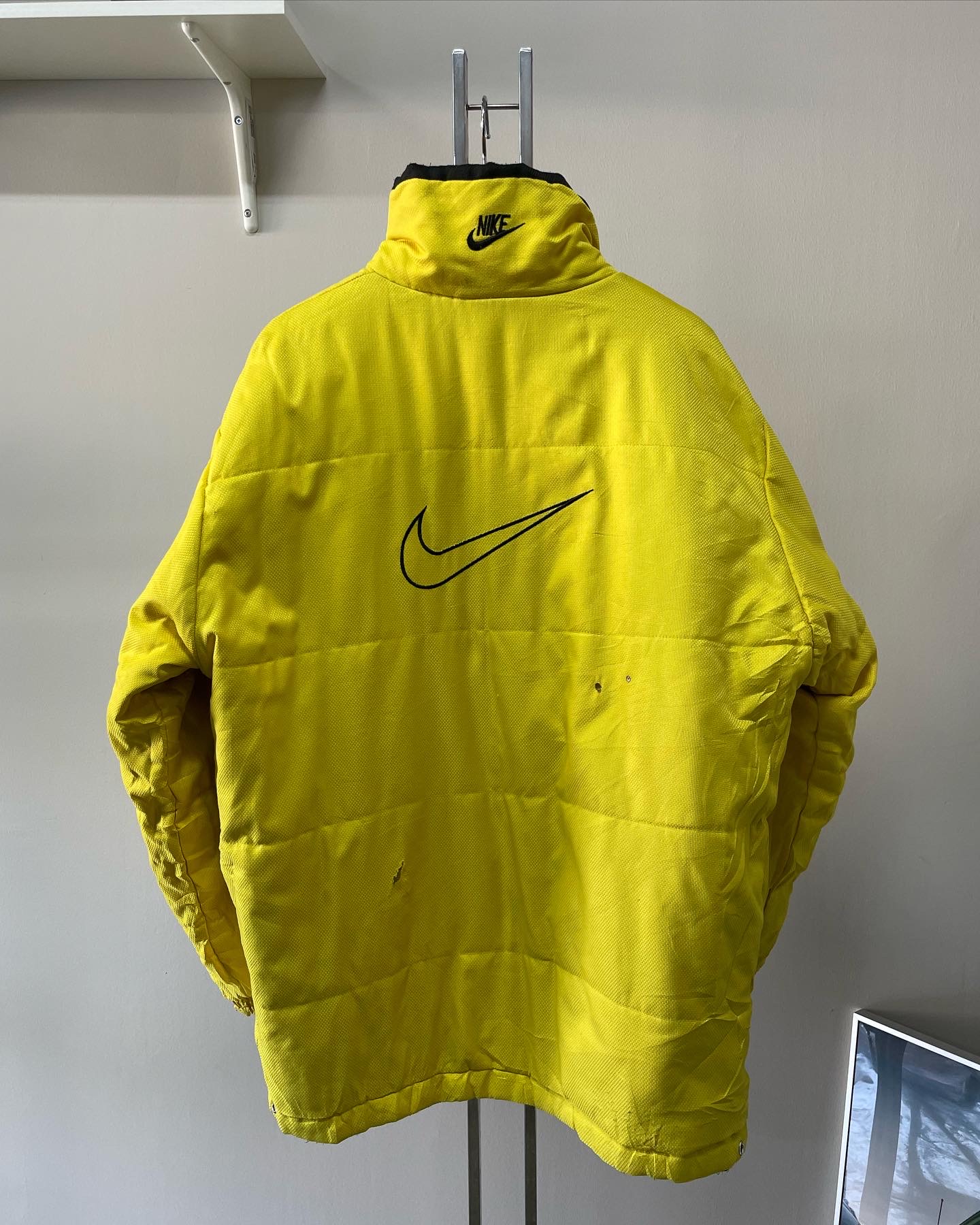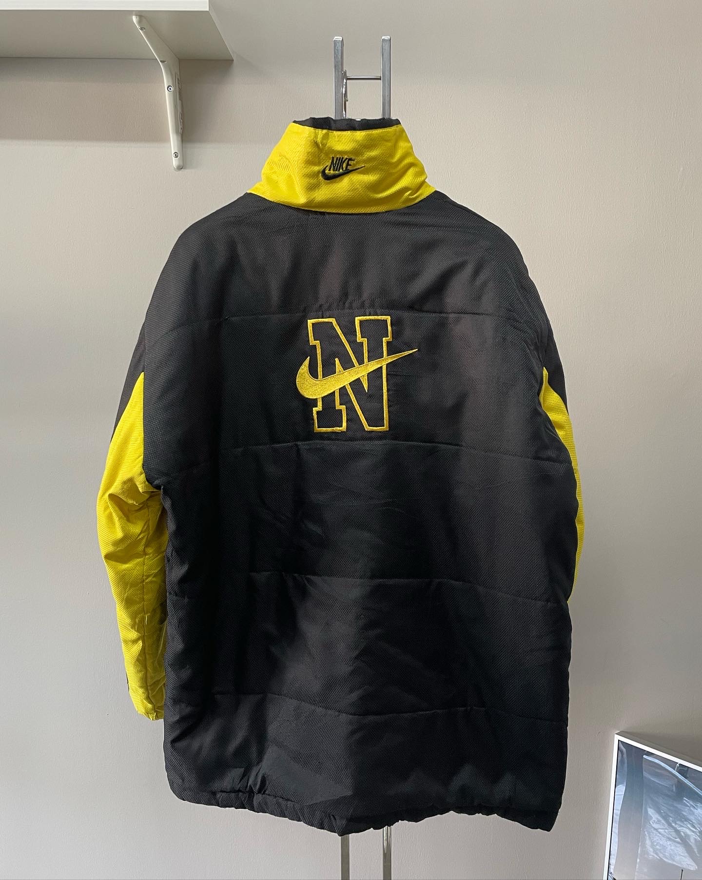 90년대 나이키 리버시블 빅로고 자켓입니다. 부분적으로 들어간 멋스러운 스우시와 나이키 로고가 들어가 있으며 등판에도 멋스러운 큰 스우시 로고가 들어가 있습니다. 앞은 검/노 뒤는 옐로우이지만, 옐로우 등판 부분에는 데미지가 존재해서 예민하신분들은 검/노로 착용하는 것을 추천드립니다. 실측 105-110 정도 추천드립니다.