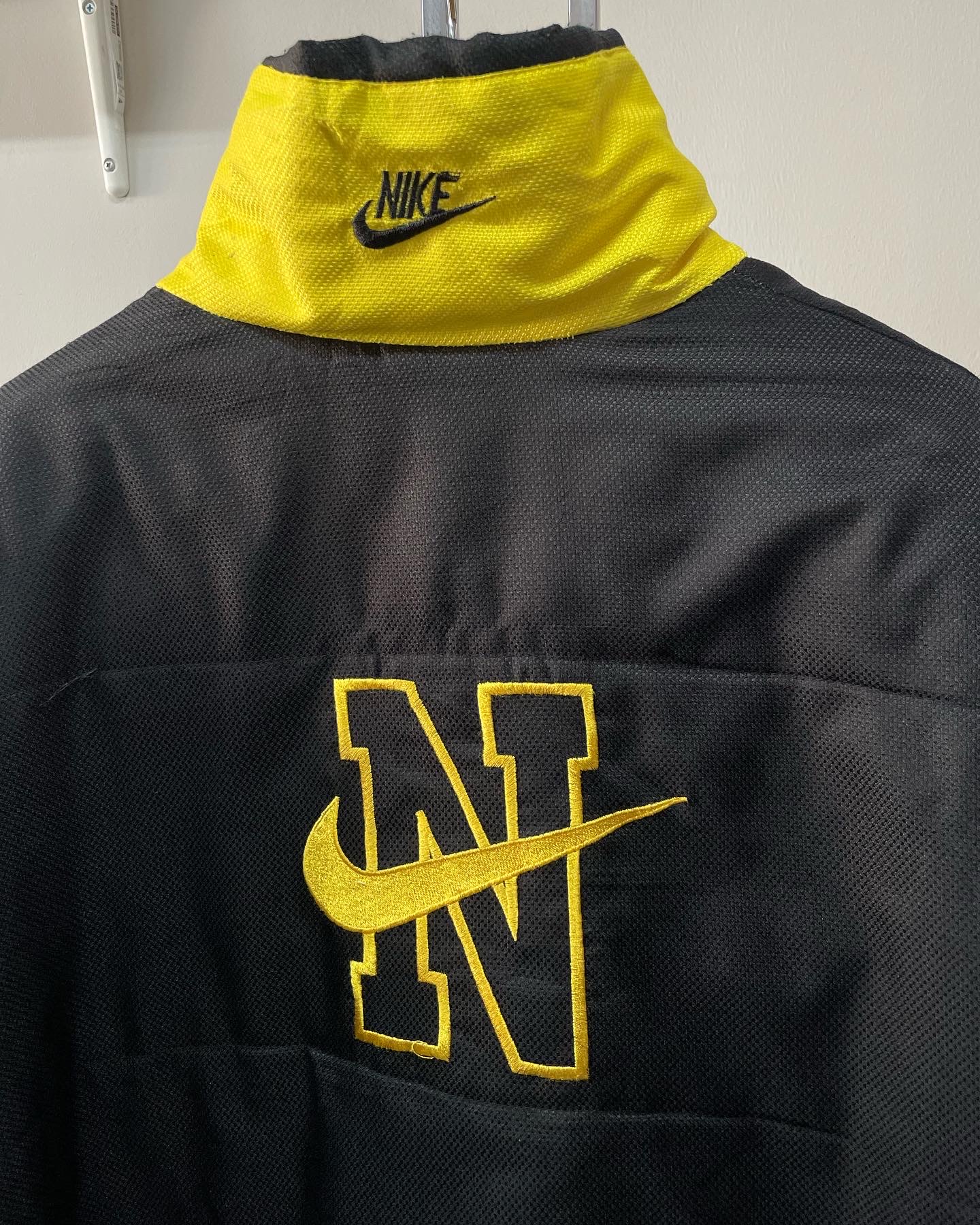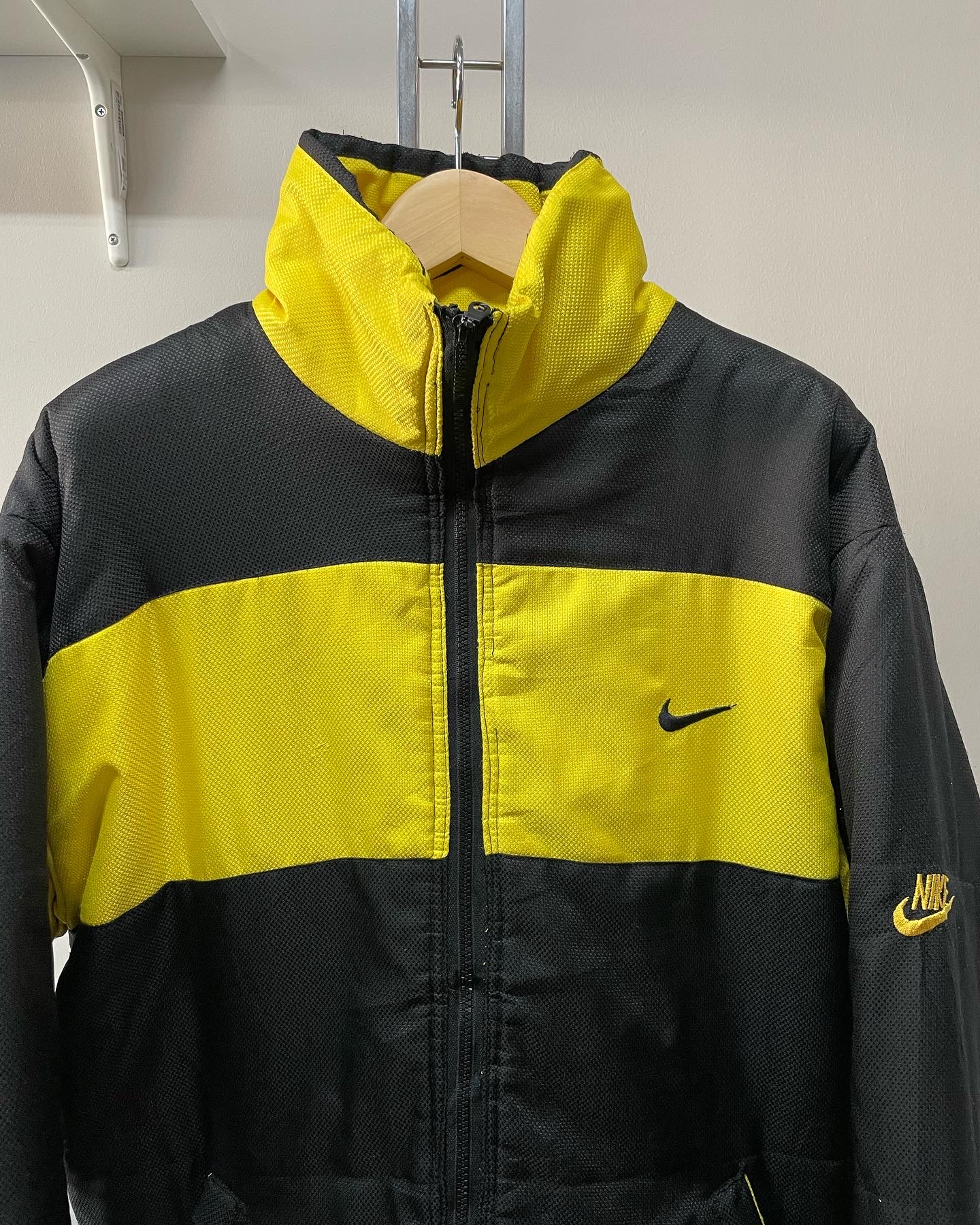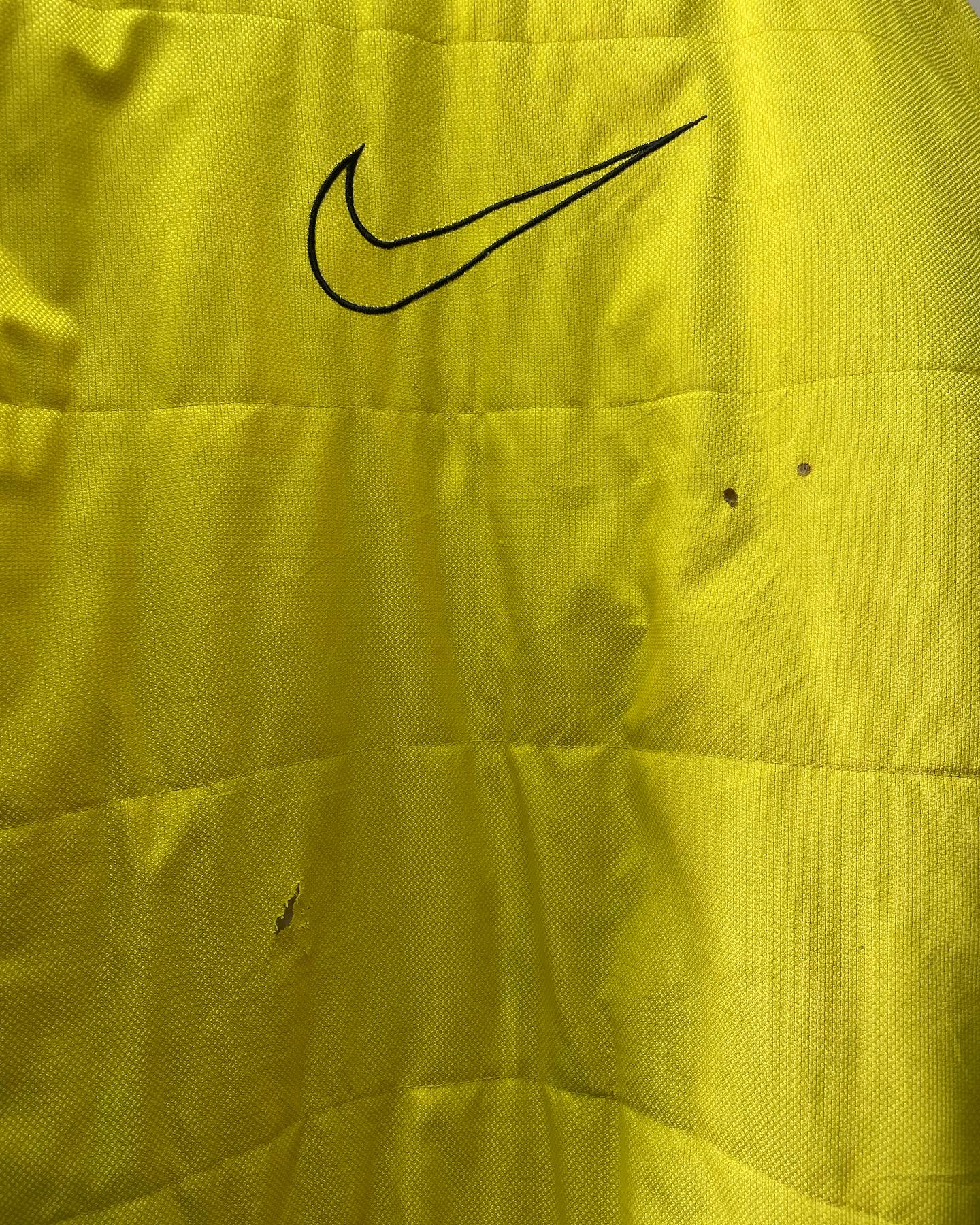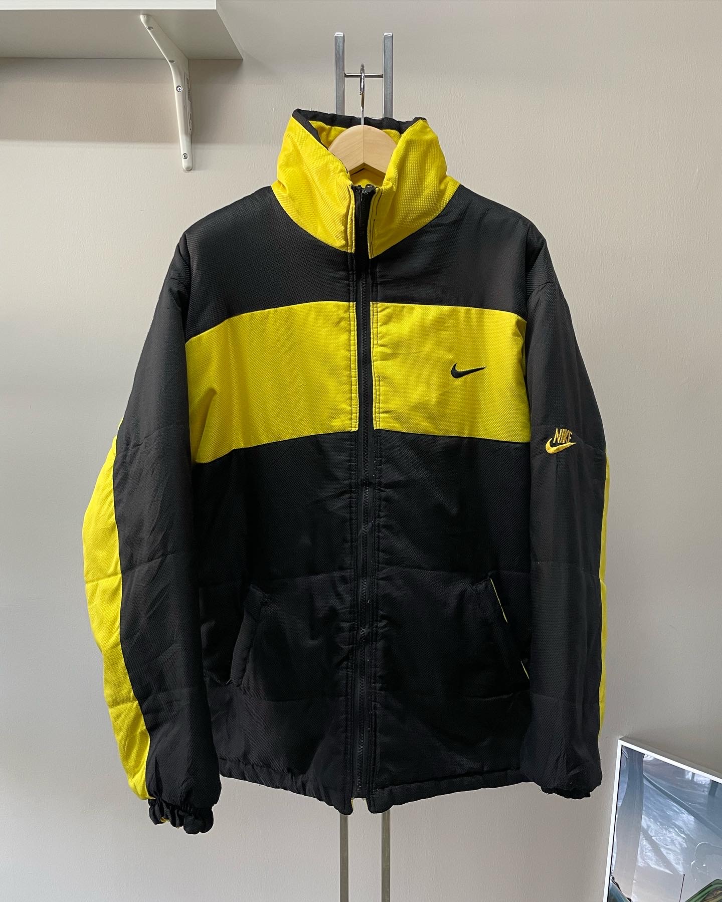 90년대 나이키 리버시블 빅로고 자켓입니다. 부분적으로 들어간 멋스러운 스우시와 나이키 로고가 들어가 있으며 등판에도 멋스러운 큰 스우시 로고가 들어가 있습니다. 앞은 검/노 뒤는 옐로우이지만, 옐로우 등판 부분에는 데미지가 존재해서 예민하신분들은 검/노로 착용하는 것을 추천드립니다. 실측 105-110 정도 추천드립니다.