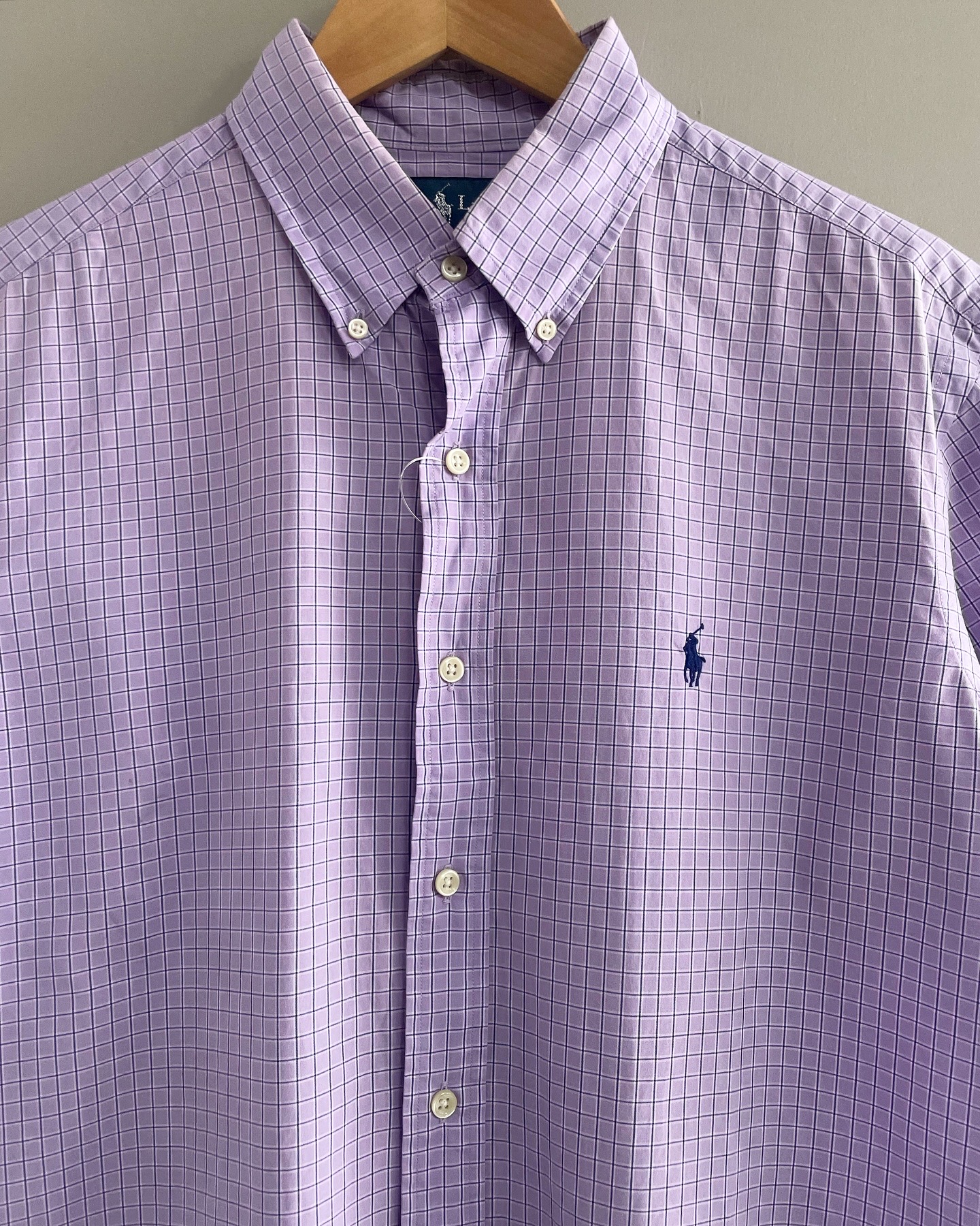 폴로 랄프로렌 클래식핏 반팔셔츠입니다. 퍼플톤 체크 컬러가 매력적인 제품이며,미세한 올트임 외 하자 없는 준수한 컨디션입니다. 실측 105정도 되는 사이즈감입니다.