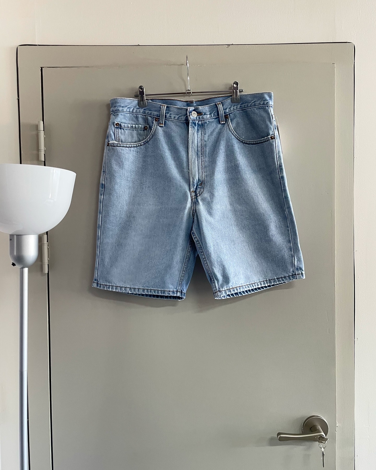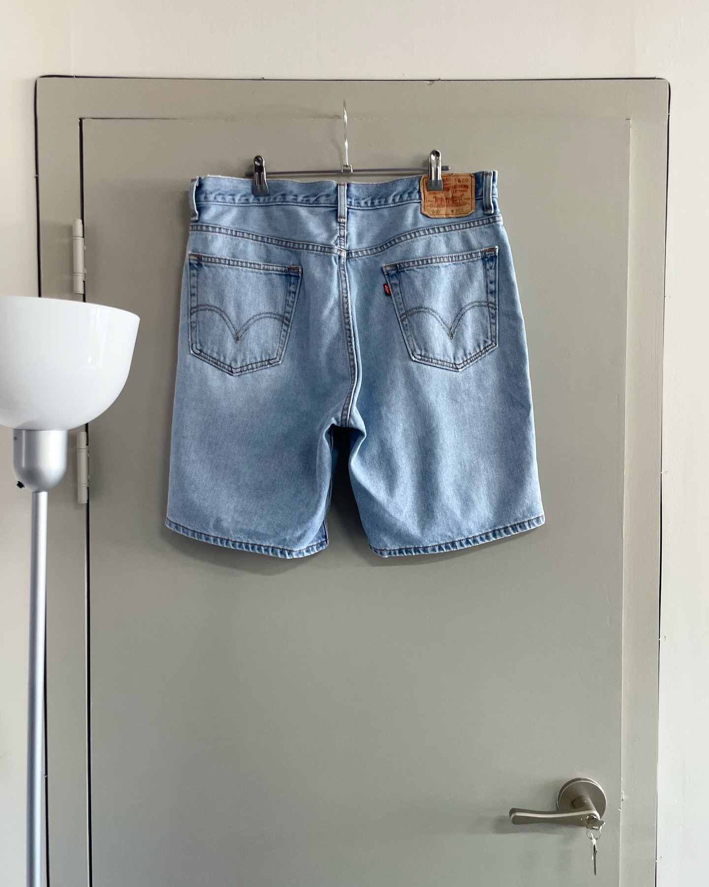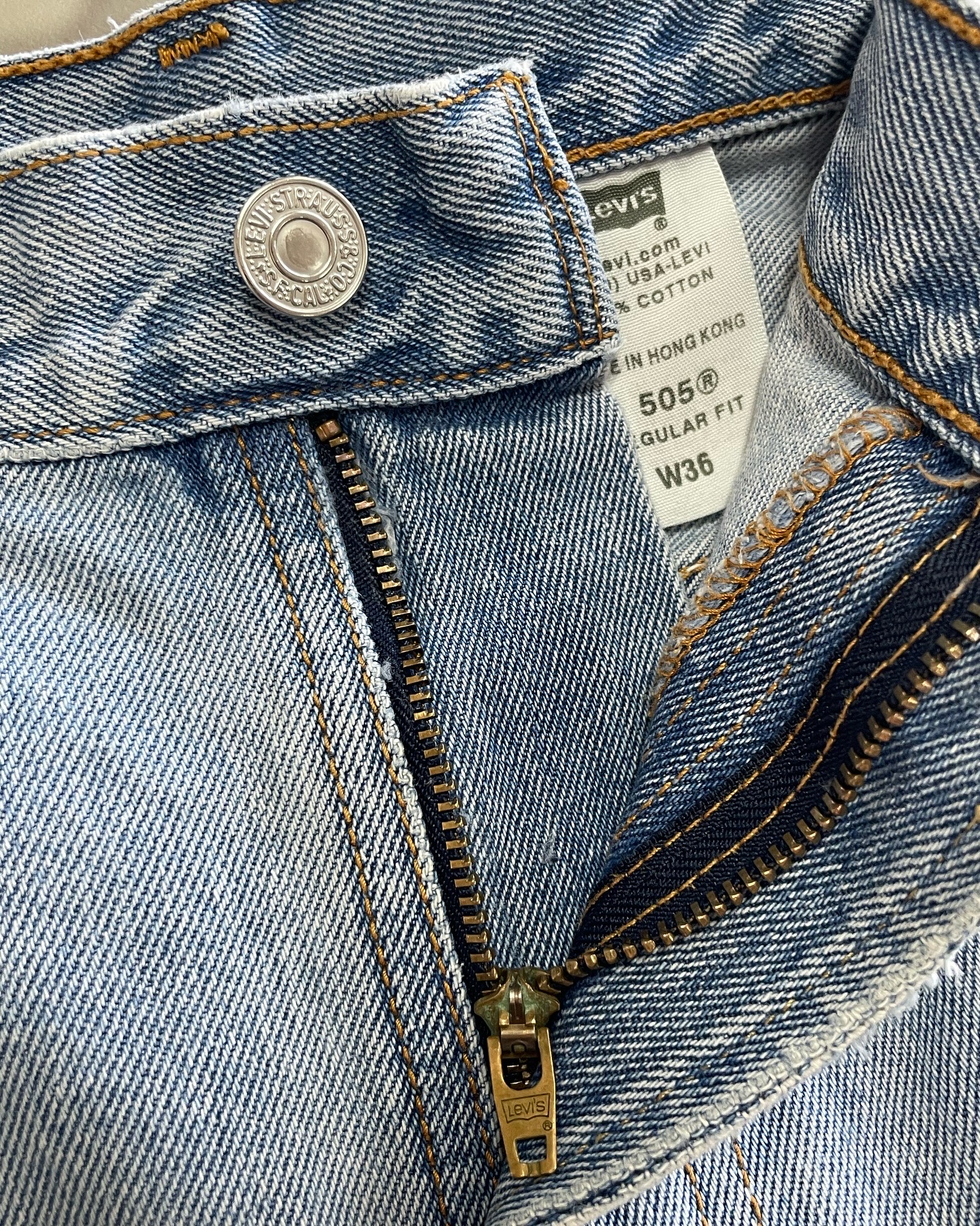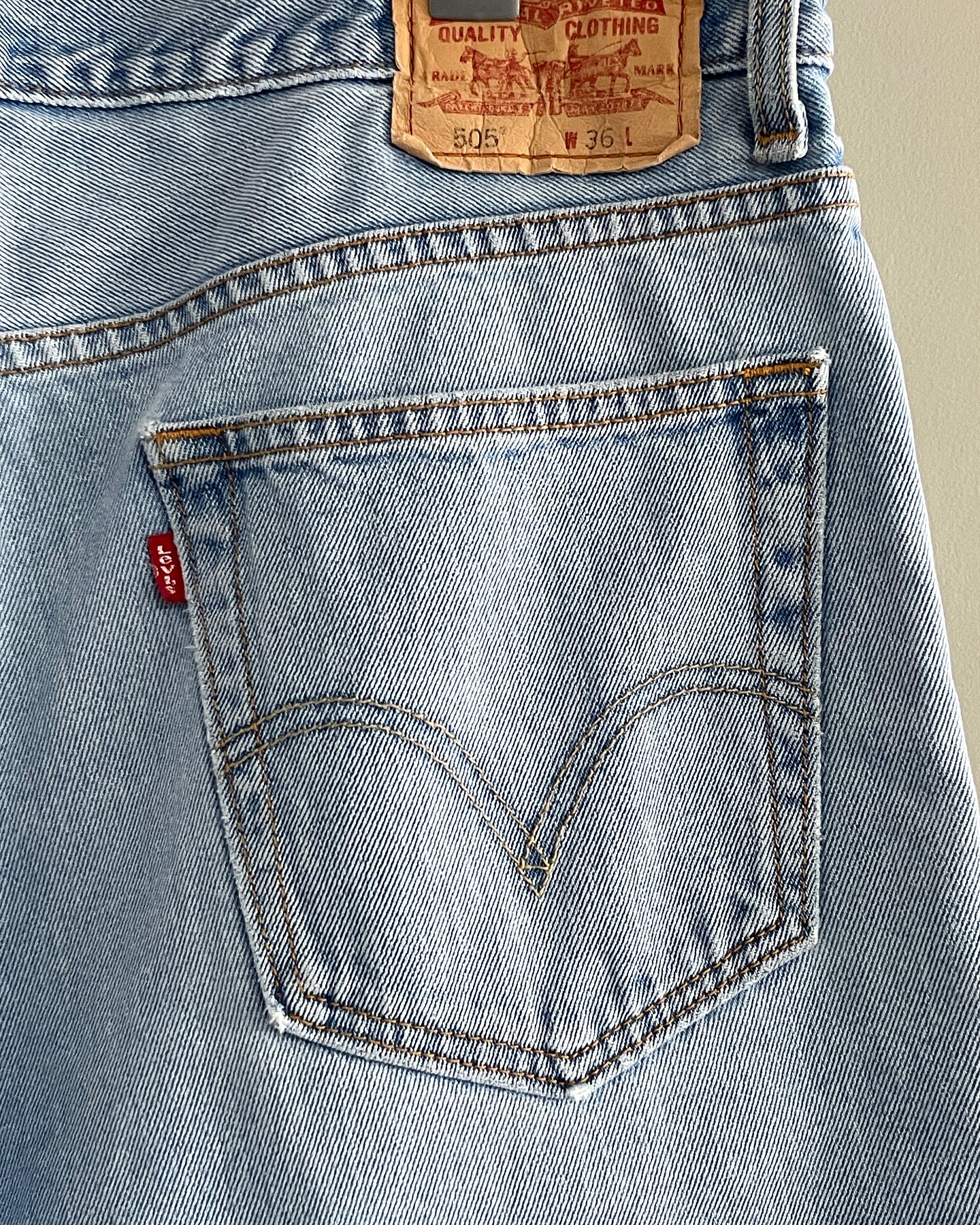 리바이스 빈티지 505데님 쇼츠입니다. 연청 워싱 컬러와 여유로운 실루엣이 매력적인 제품이며, 하자 없는 양호한 컨디션입니다. 실측 36 정도 되는 사이즈감입니다.