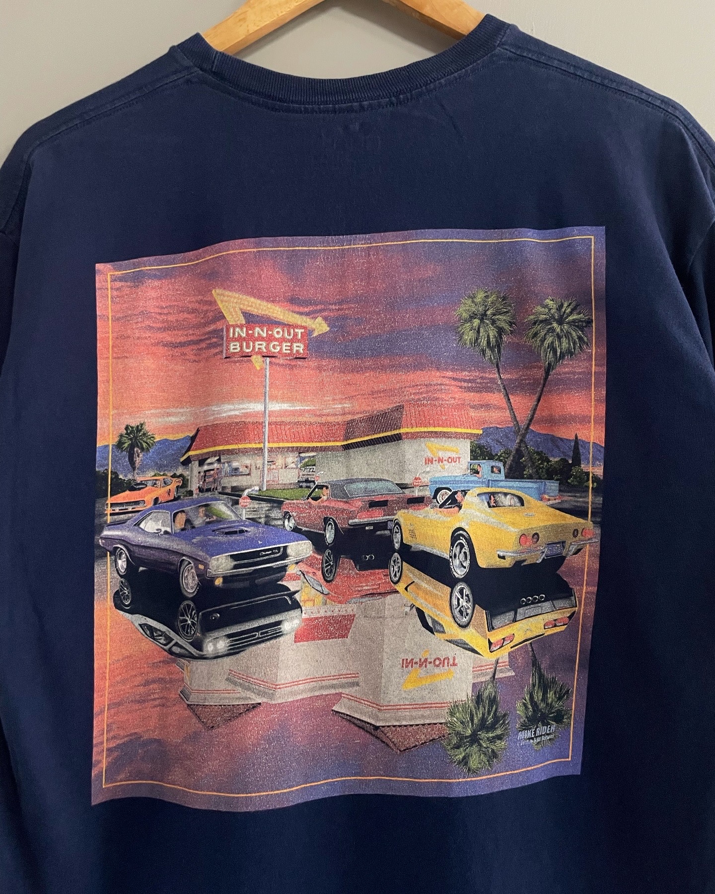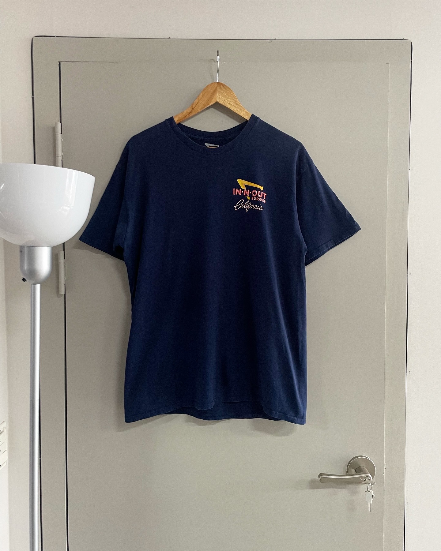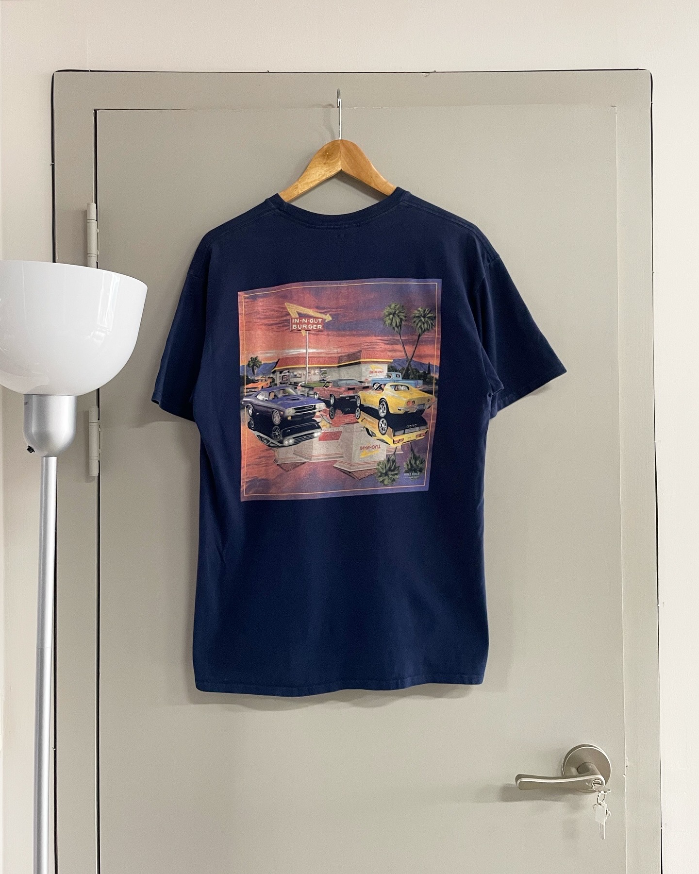 미국 대표 버거 브랜드 인앤아웃의 빈티지 티셔츠입니다. 사진상 보이는 아주 미세한 오염 외 준수한 컨디션이며 실측 100-105 정도 되는 사이즈감입니다.