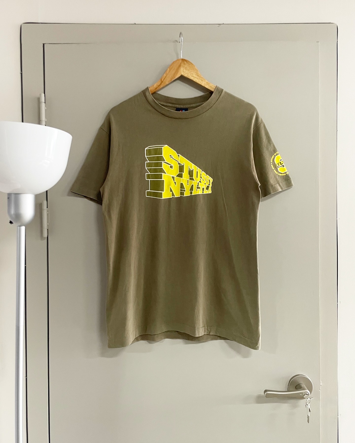 00년대 초반 생산된 USA MADE 스투시 인터내셔널 라인 빈티지 티셔츠입니다. 스펠아웃 프린팅 나염과 싱글스티치 디테일이 돋보이는 매력적인 제품입니다. 하자 및 데미지 없는 양호한 컨디션이며, 실측 95-100 정도 되는 사이즈감입니다.