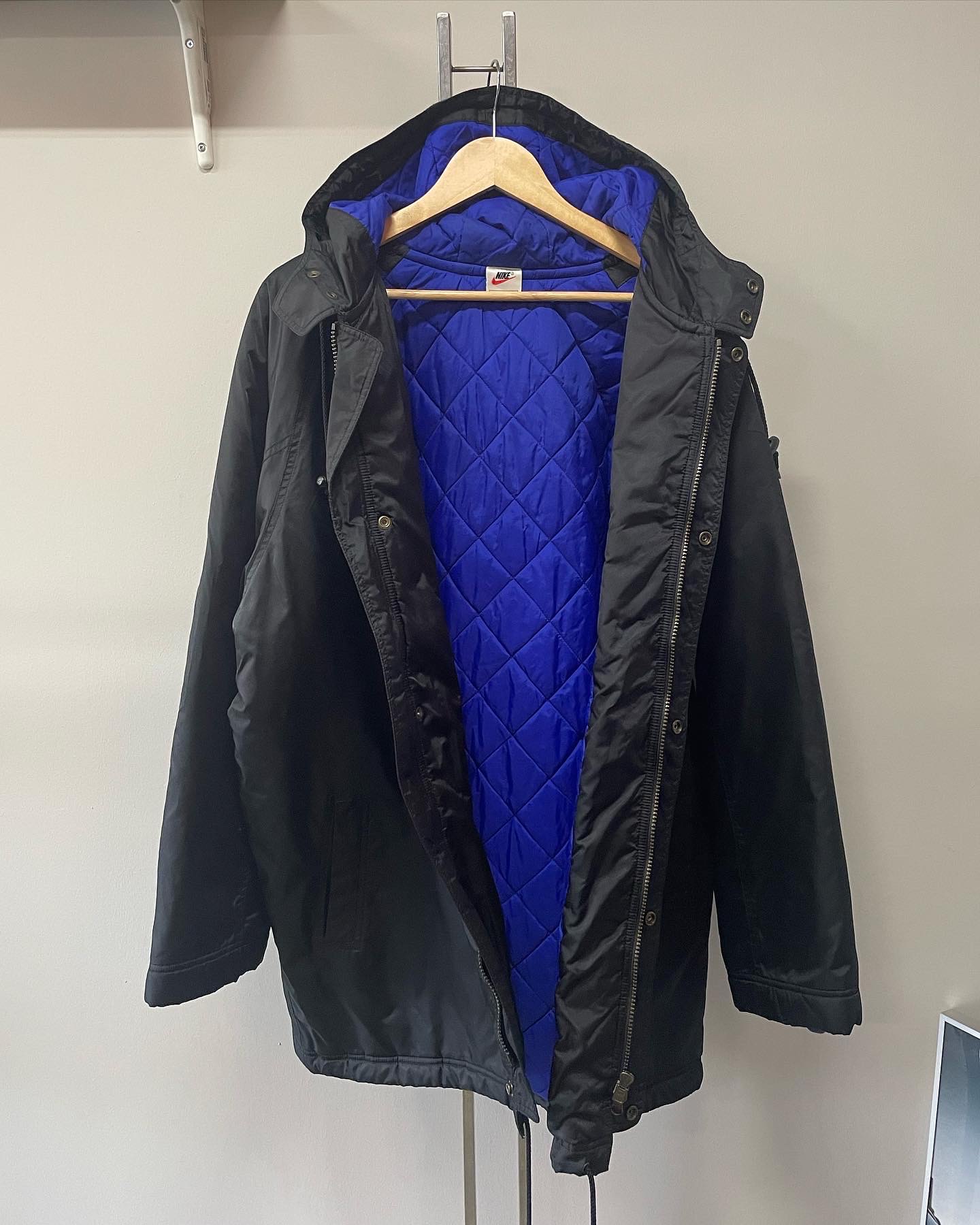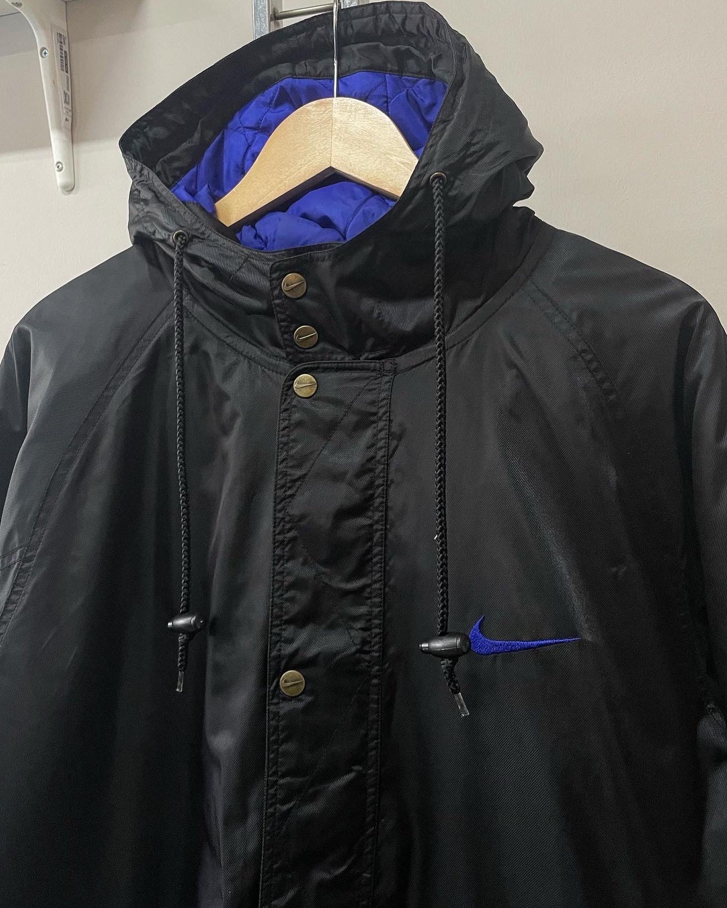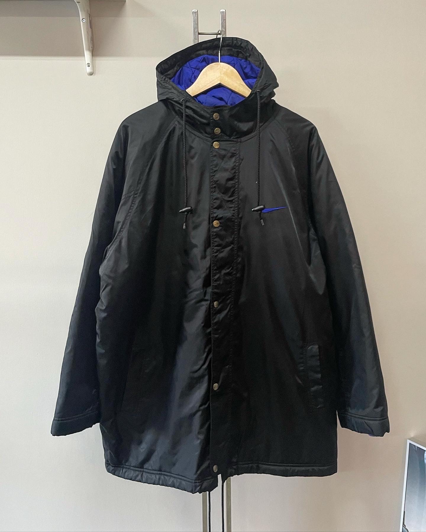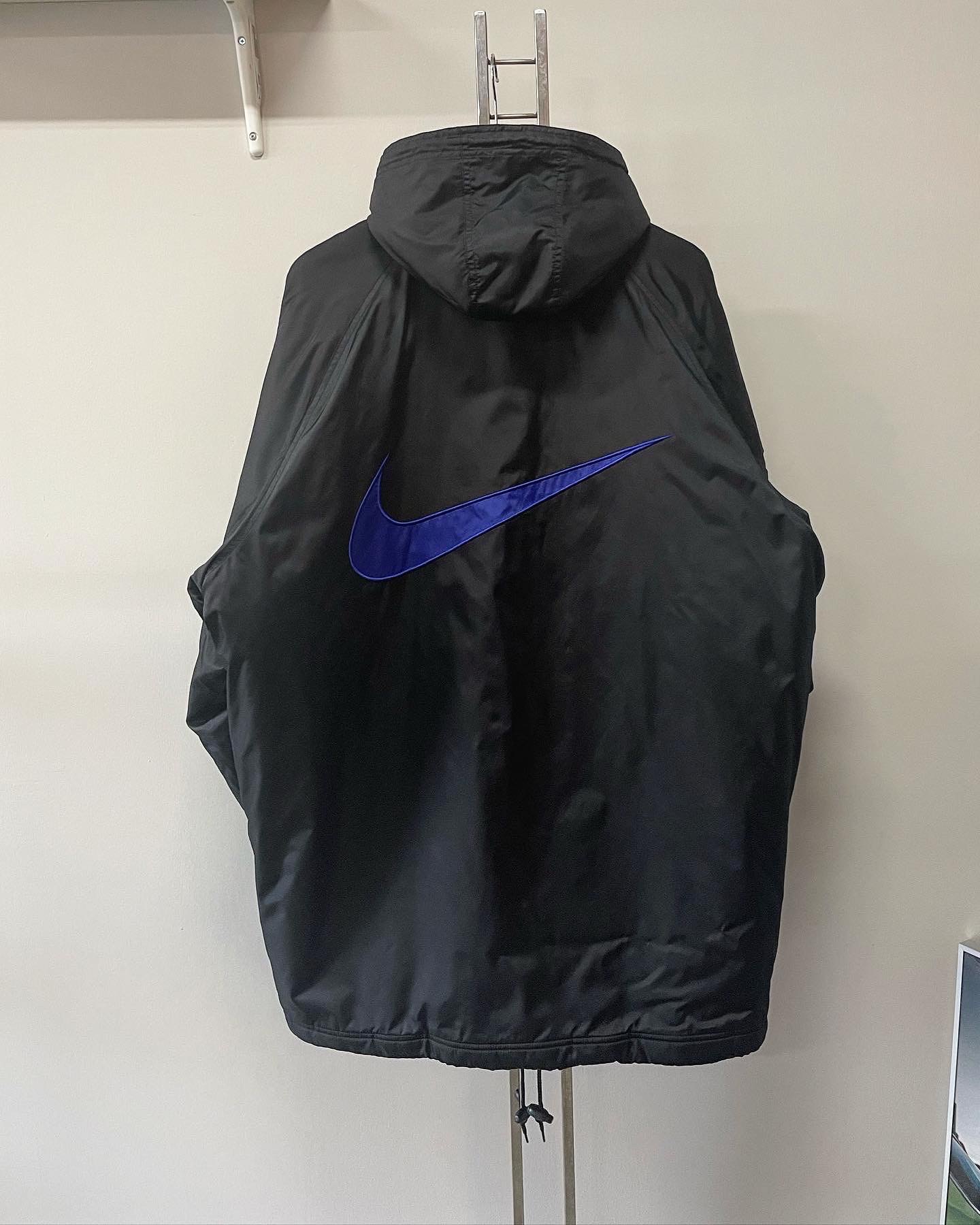 90년대 생산 나이키의 빅스우시 나일론 자켓입니다. 흔하게 보기 힘든 블랙&블루 컬러로 스우시와 안감에 블루 포인트가 들어갔으며 유니크한 나이키 부자재들이 매력적인 자켓입니다. 또한, 투웨이 지퍼로 스타일 연출하기도 용이하며 편리성도 좋은 자켓이라 생각합니다. 앞면 눈에 잘 안띄는 미세한 데미지 존재 외에 전체적으로 양호한 컨디션입니다.