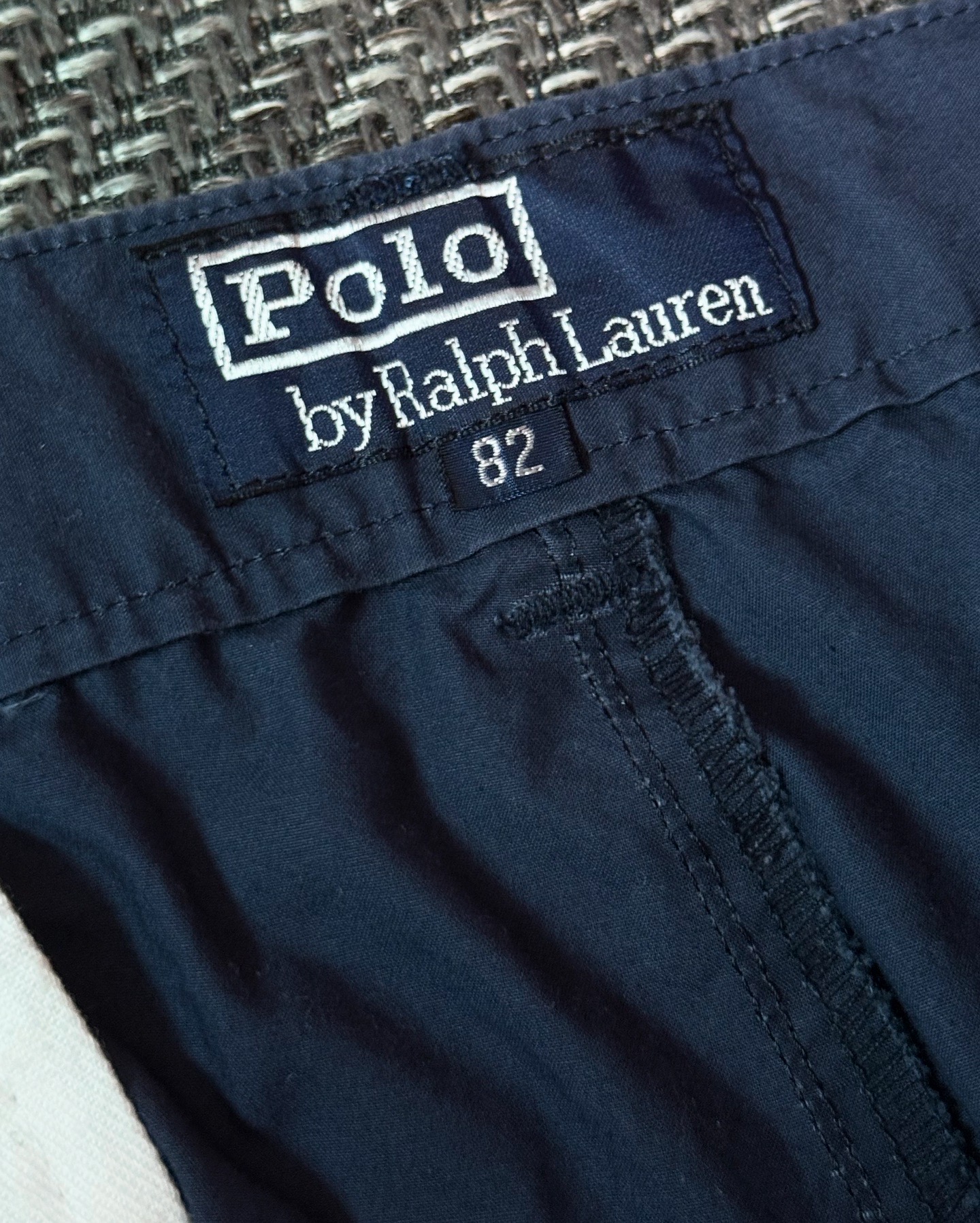 폴로 랄프로렌 치노팬츠입니다. 얇은 원단감의 워시드된 네이비 컬러와 투플리츠 디테일이 매력적인 제품입니다. 하자 및 데미지 없는 준수한 컨디션이며, 실측 30 정도 되는 사이즈감입니다.