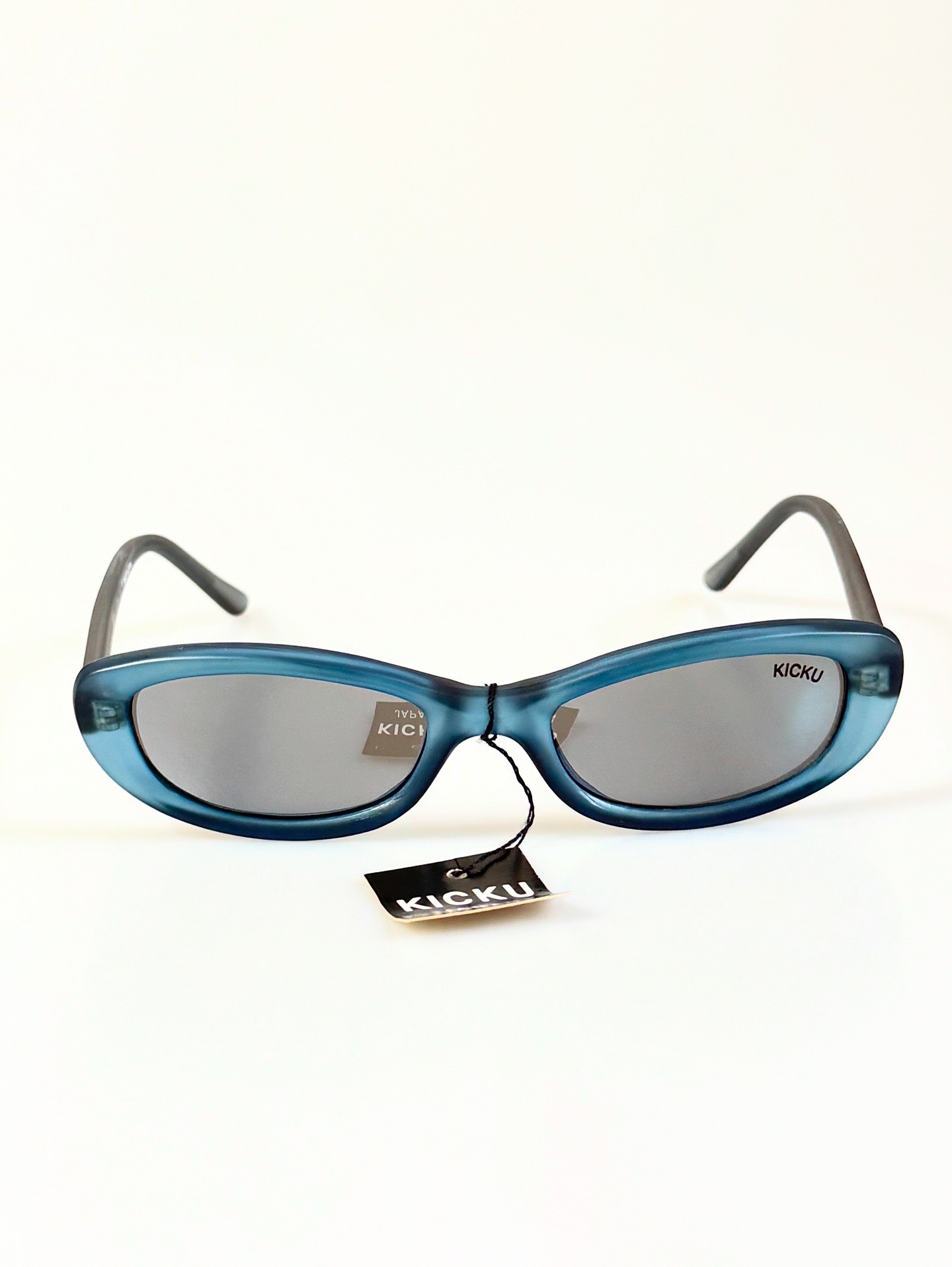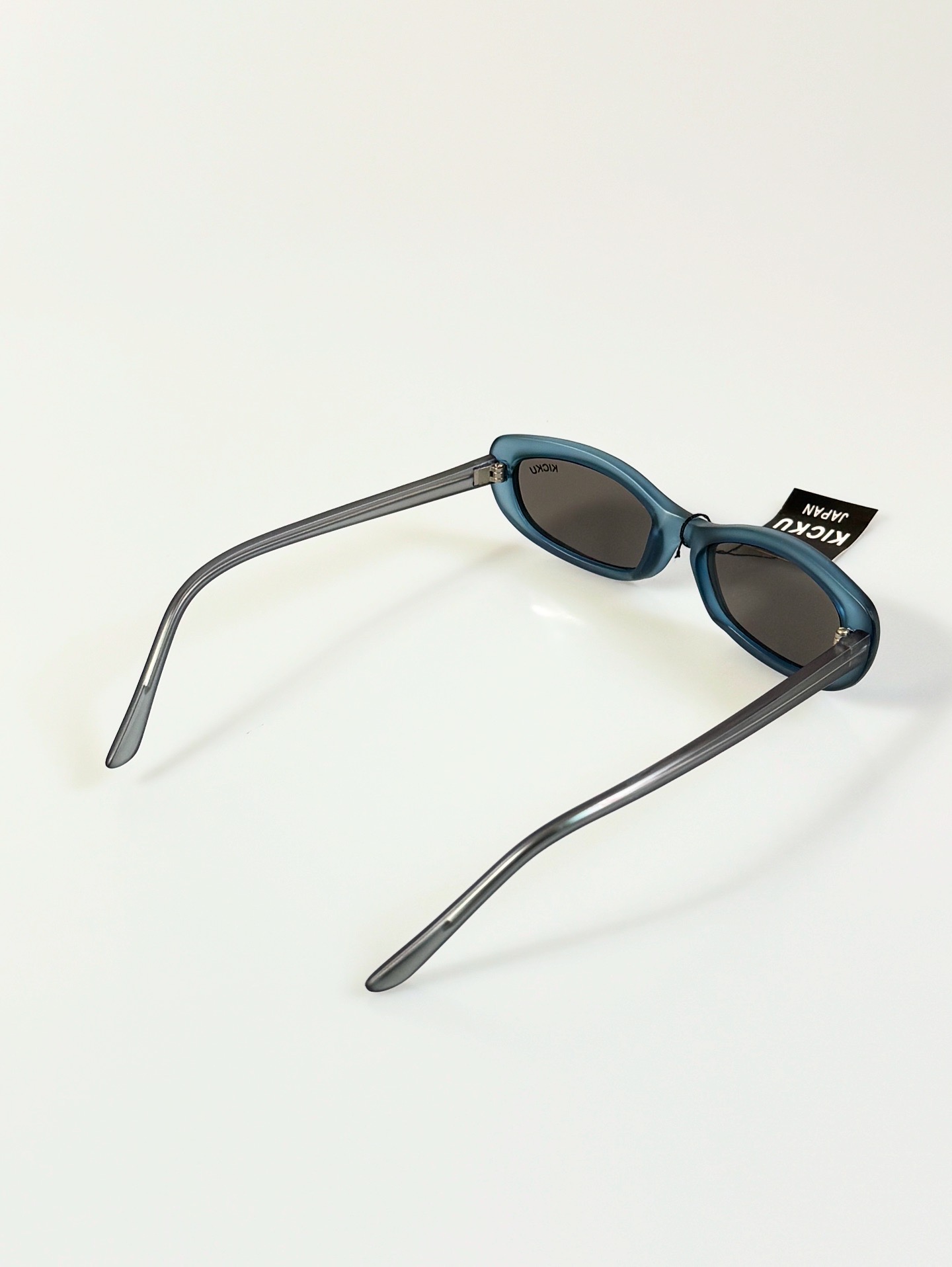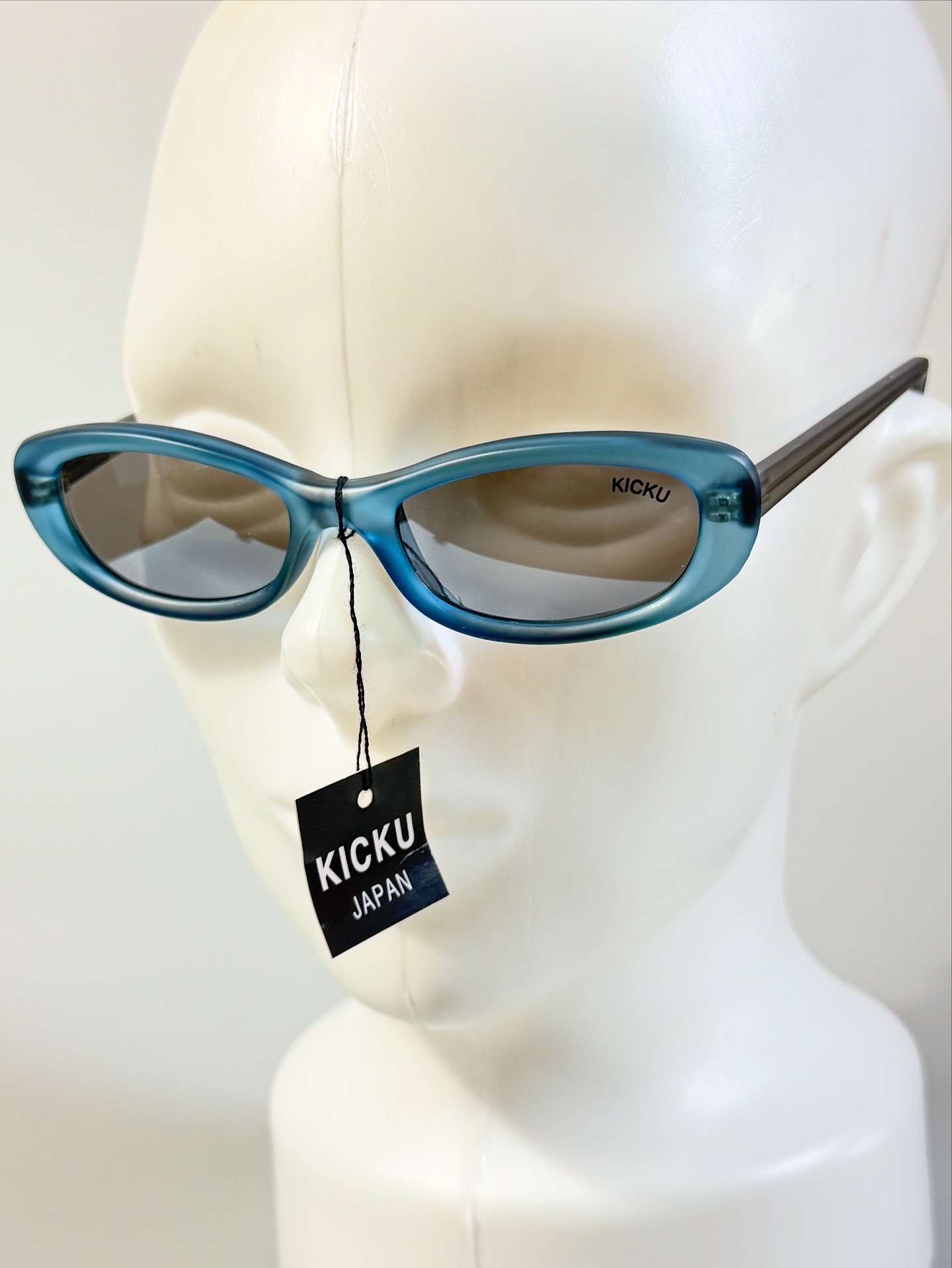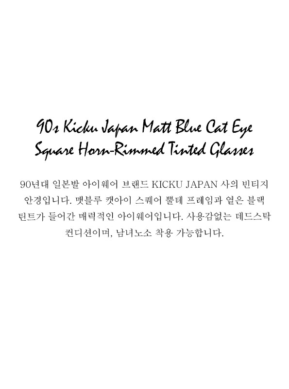 90s Kicku Japan Matt Blue Cat Eye Square Horn-Rimmed Tinted Glasses
