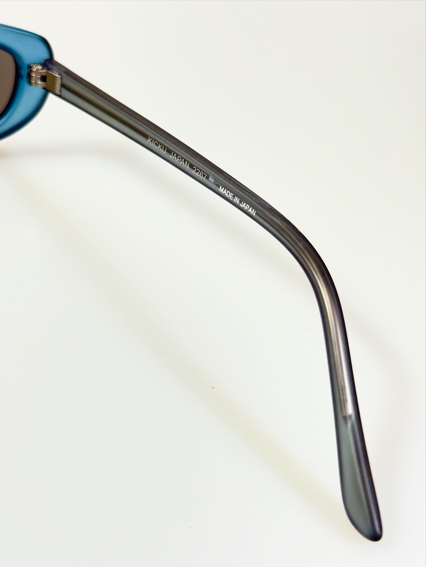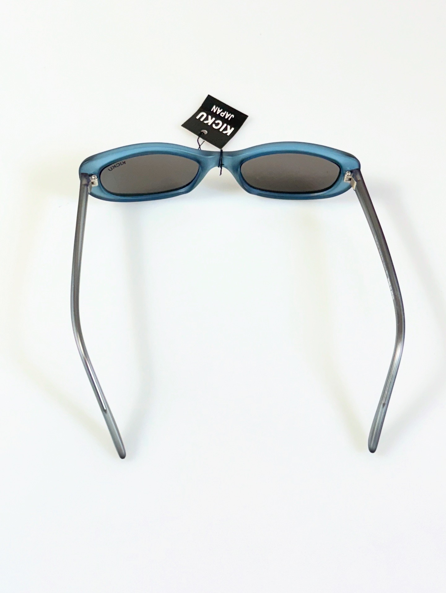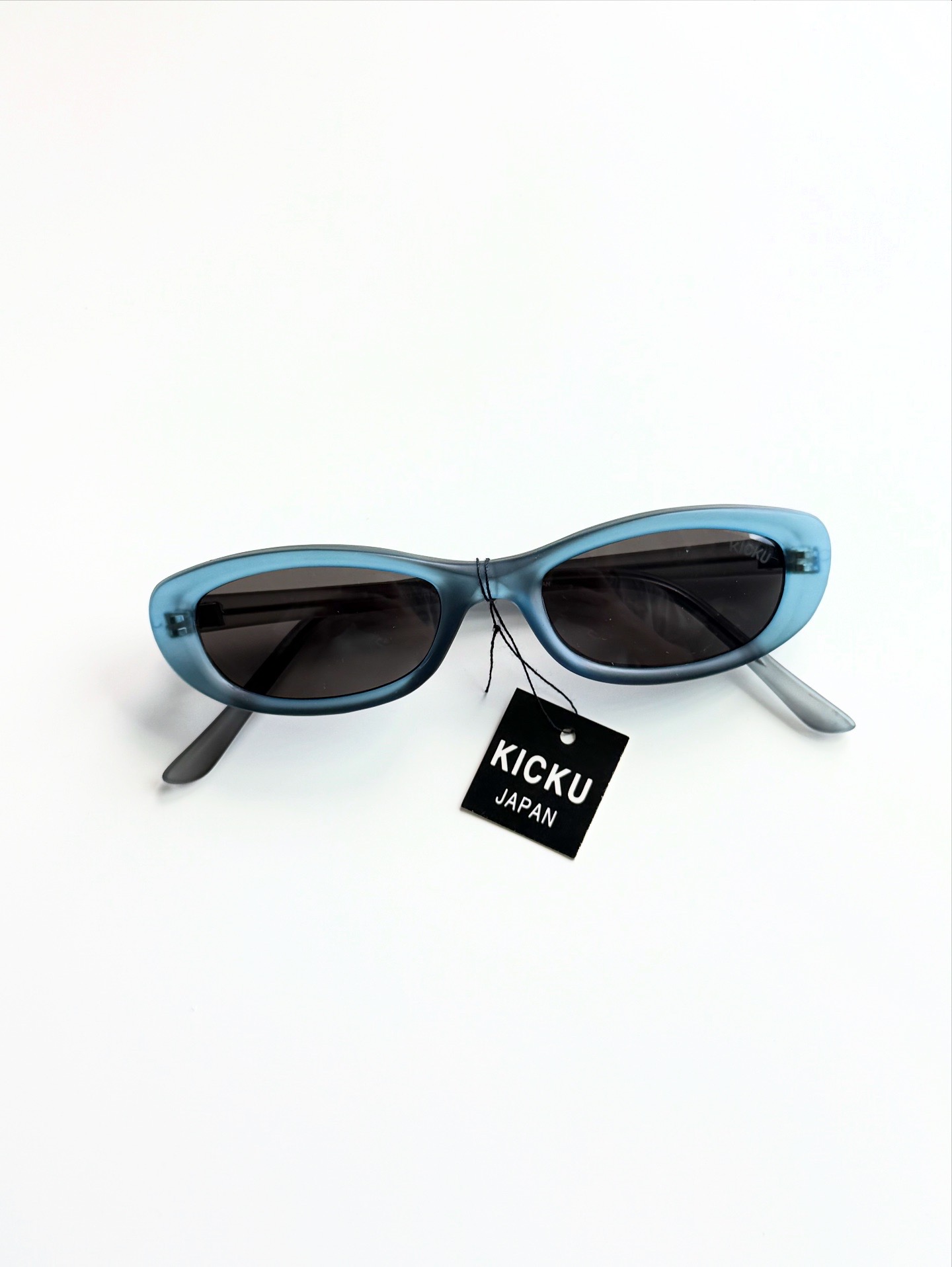 90s Kicku Japan Matt Blue Cat Eye Square Horn-Rimmed Tinted Glasses