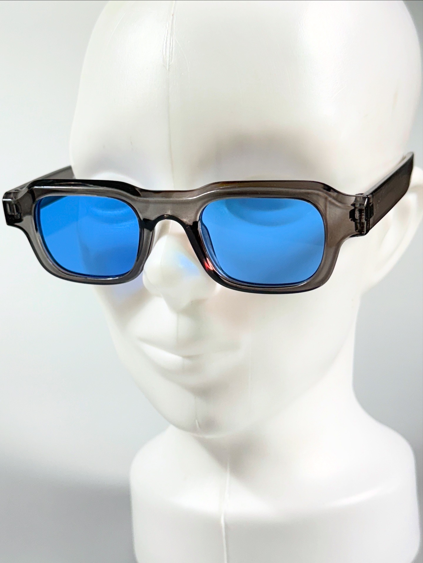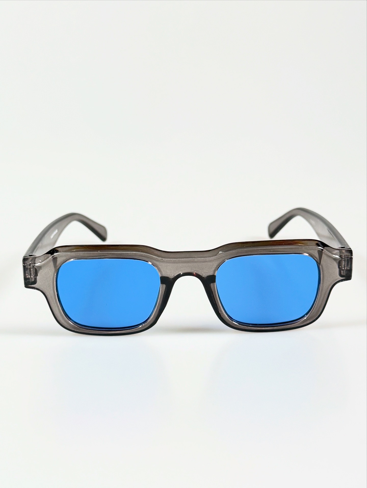 Grey Bold Square Blue Tinted Sunglasses