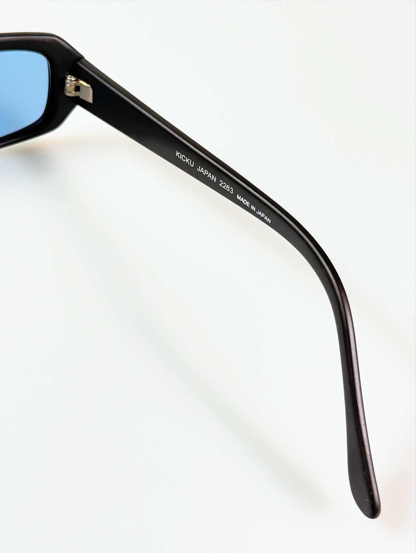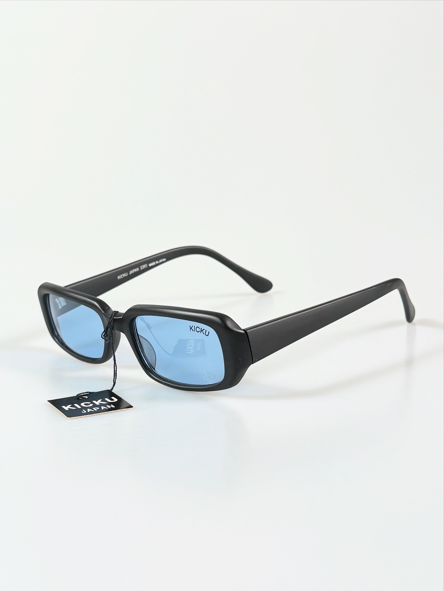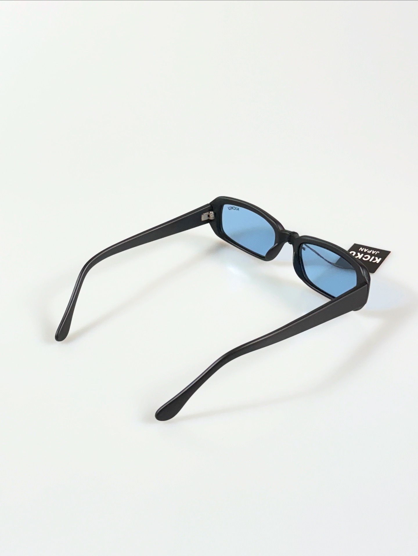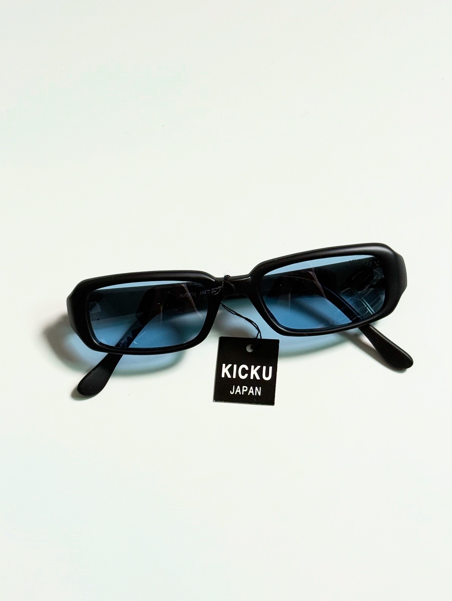 90s Kicku Japan Matt Black Square Horn-Rimmed Tinted Glasses