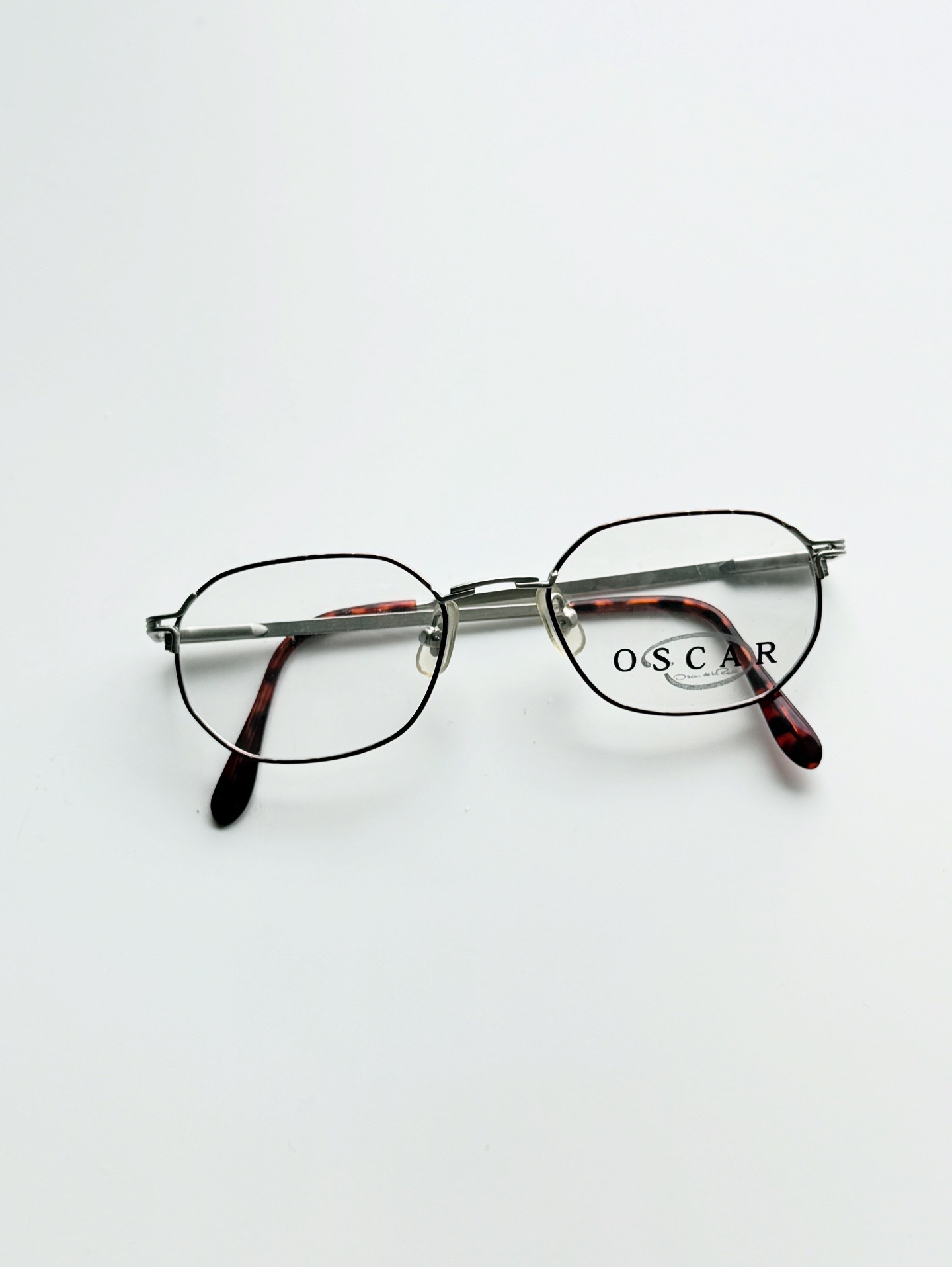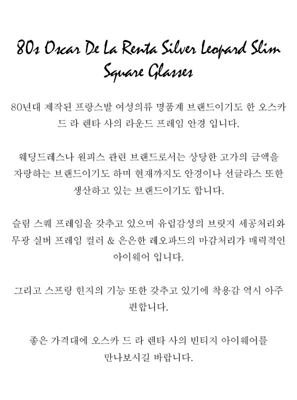 80s Oscar De La Renta Silver Leopard Slim Square Glasses