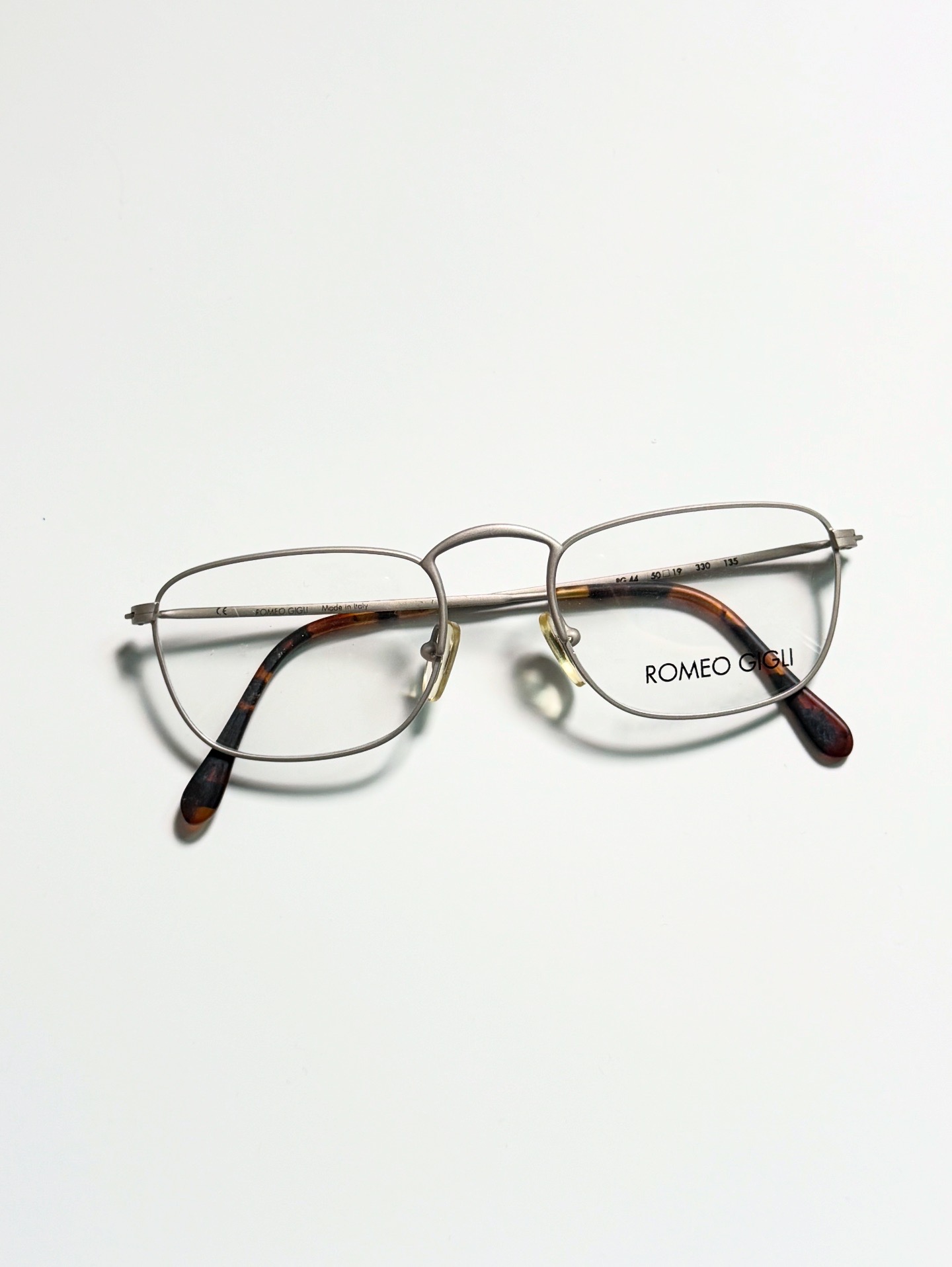 Romeo Gigli Matt Silver Slim Square Glasses