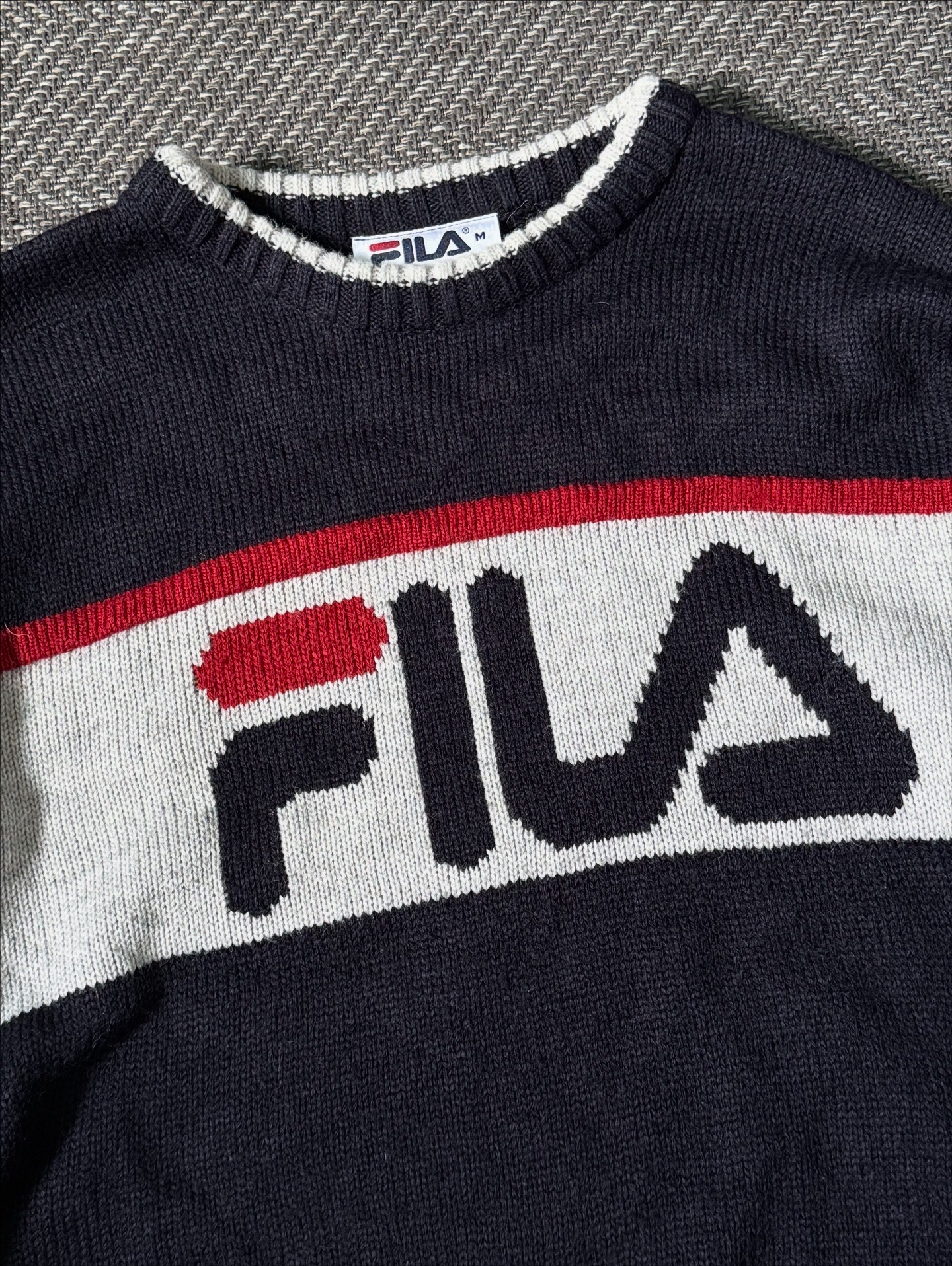 국내로 인수되기 이전 이태리 브랜드 시절 90년대 영국제 휠라 아크릴 빈티지 스웨터입니다. 하자 및 데미지 없는 양호한 컨디션입니다. 오버핏한 실루엣으로, 실측 105 정도 되는 사이즈감입니다.