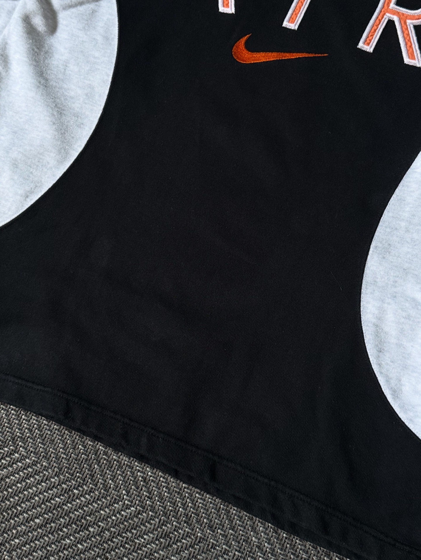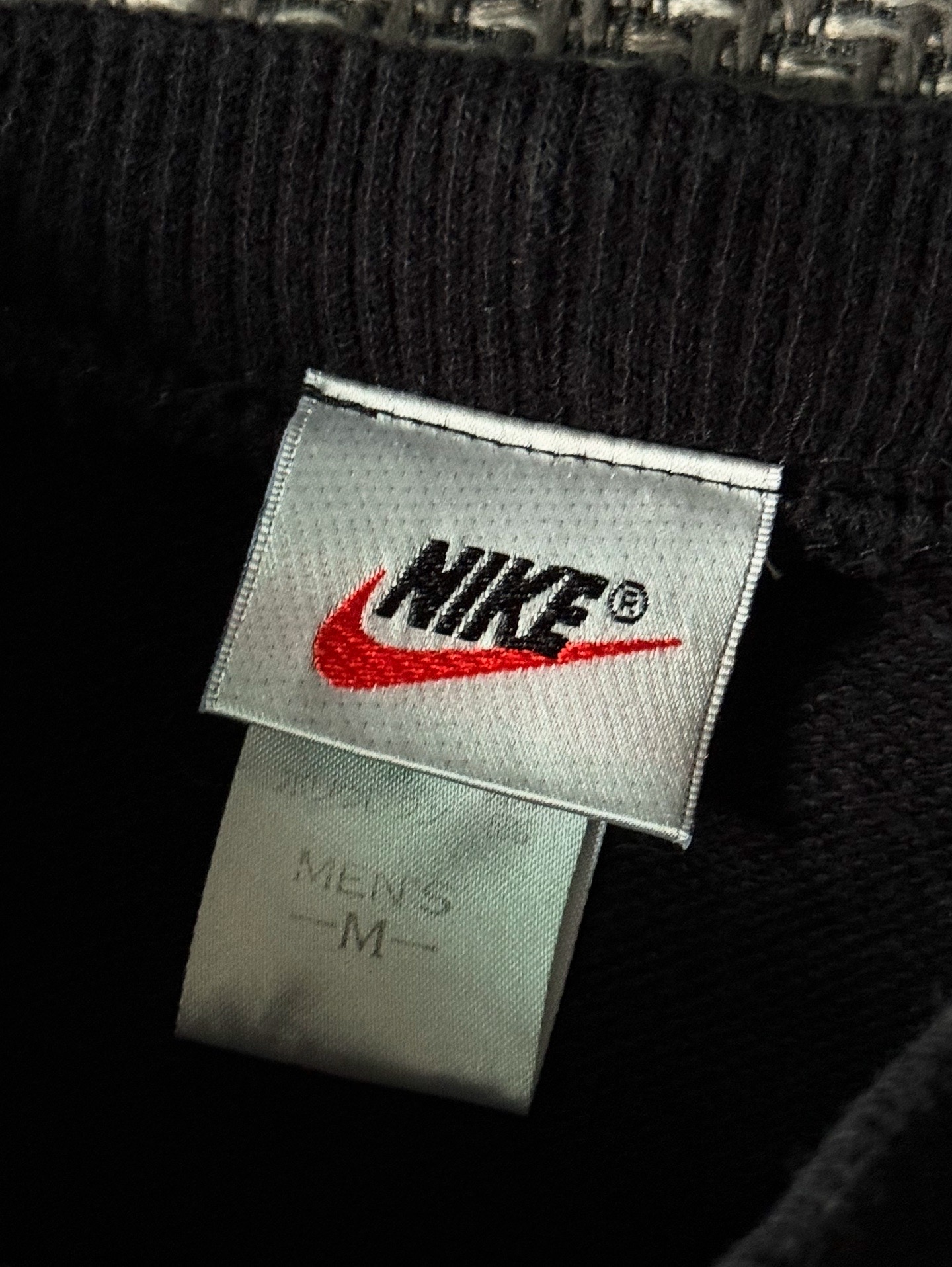 블랙 바디에 그레이 슬리브가 배색된 독특한 디자인으로, 당시 나이키 특유의 스포티하면서도 스트리트 감성을 느낄 수 있습니다. 탄탄한 면 100% 원단으로 제작되어 오래 착용해도 형태감이 잘 유지되며, 안감은 기모가 없는 가볍고 드라이한 타입이라 계절감에 맞게 다양하게 활용 가능합니다. 남성 M 사이즈로 출시된 제품이며, 실측 100-105 정도 되는 사이즈입니다.