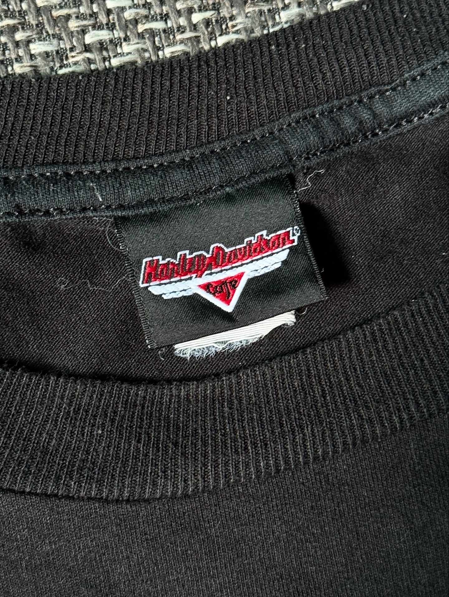 불사조를 모티브로 한 강렬한 그래픽이 인상적인 Harley-Davidson Cafe Las Vegas 빈티지 롱슬리브 티셔츠입니다. 블랙 컬러 바탕 위에 불꽃처럼 번지는 레드·옐로우 톤의 프린트가 시선을 사로잡으며, Harley-Davidson 특유의 자유롭고 강렬한 무드를 완벽히 담아낸 디자인입니다.