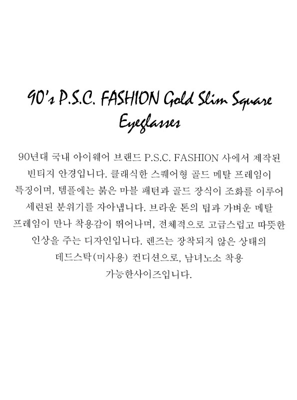 90’s P.S.C. FASHION Gold Slim Square Eyeglasses