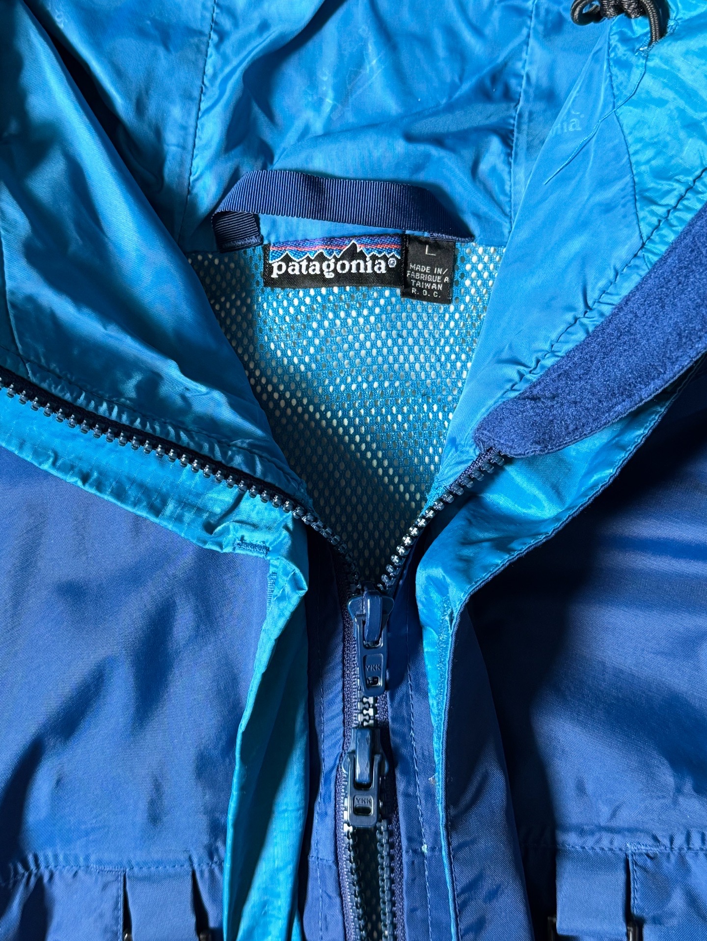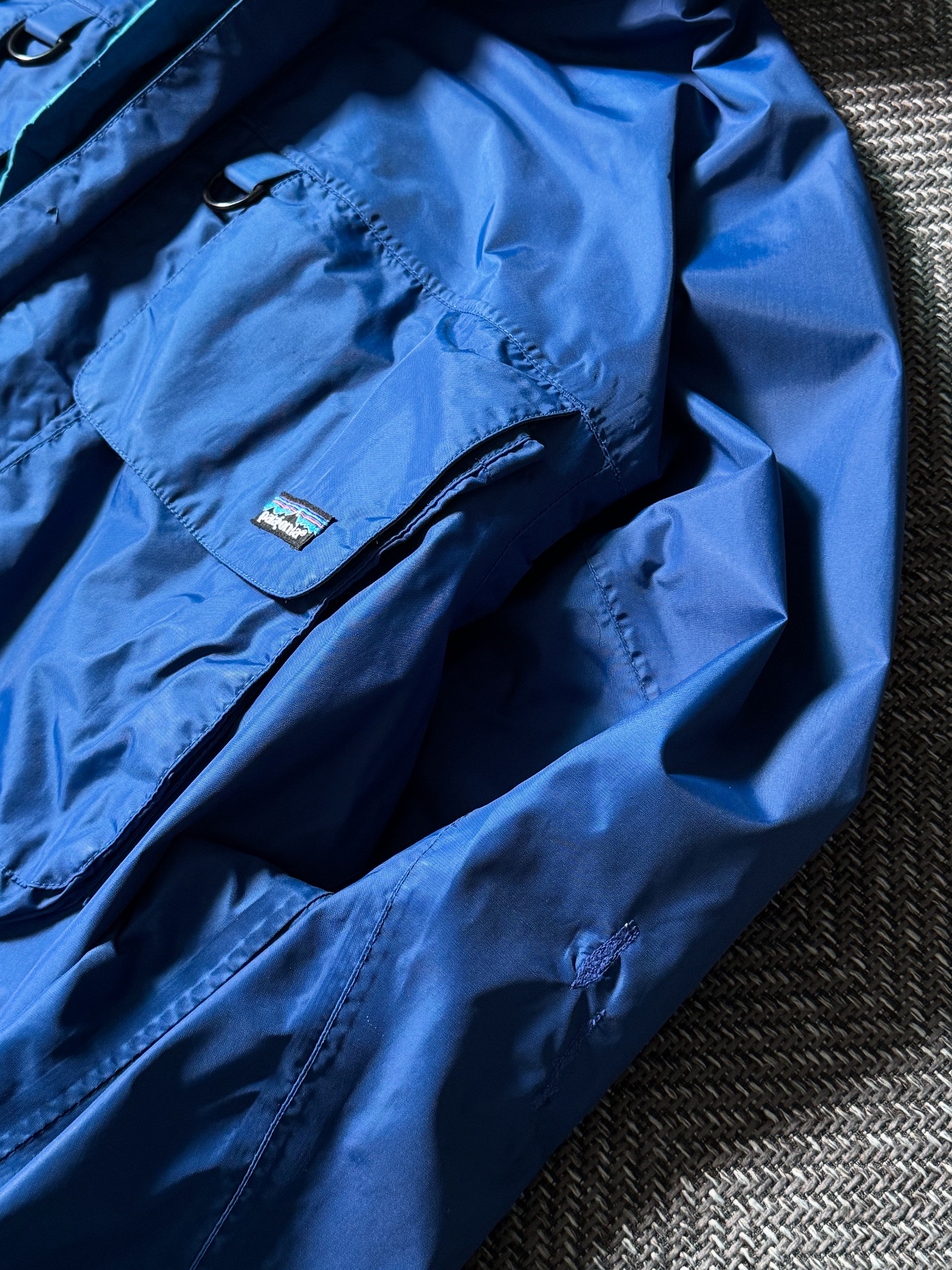 1980년대 후반에서 1990년대 초반 사이 타이완(Republic of China)에서 생산된 초기형으로, 현재는 보기 드문 레어 아이템으로 평가받습니다. 고유의 짙은 블루 컬러와 은은한 광택감, 그리고 스카이블루 톤의 내피 조합이 돋보이며, 전면 4포켓과 D링 디테일, 메쉬 안감 등 실용적인 구조가 파타고니아 특유의 기술력을 보여줍니다.