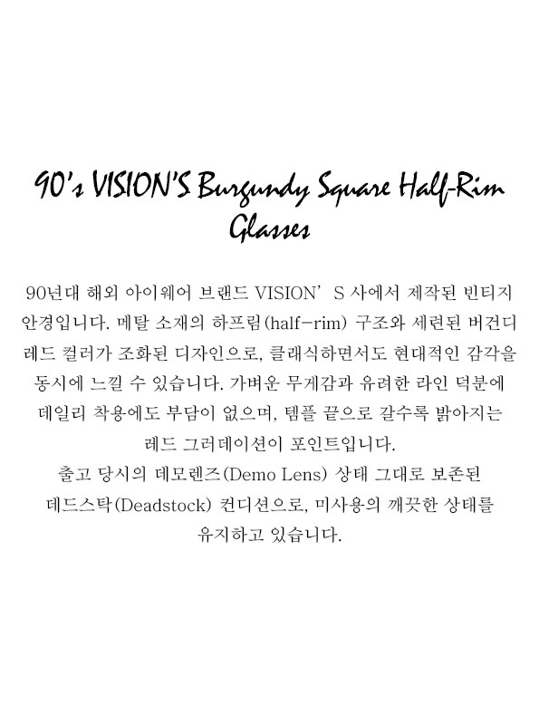 90’s VISION’S Burgundy Square Half-Rim Glasses