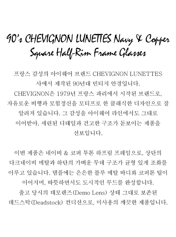 90’s CHEVIGNON LUNETTES Navy & Copper Square Half-Rim Frame Glasses