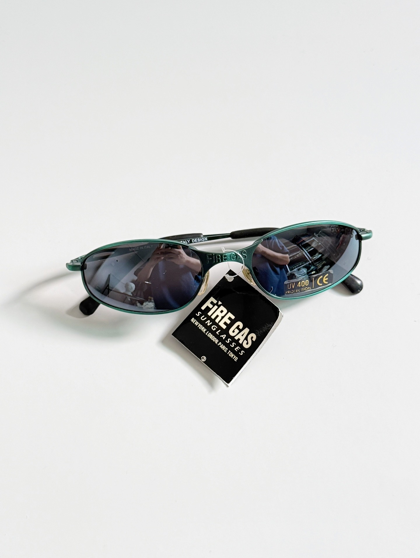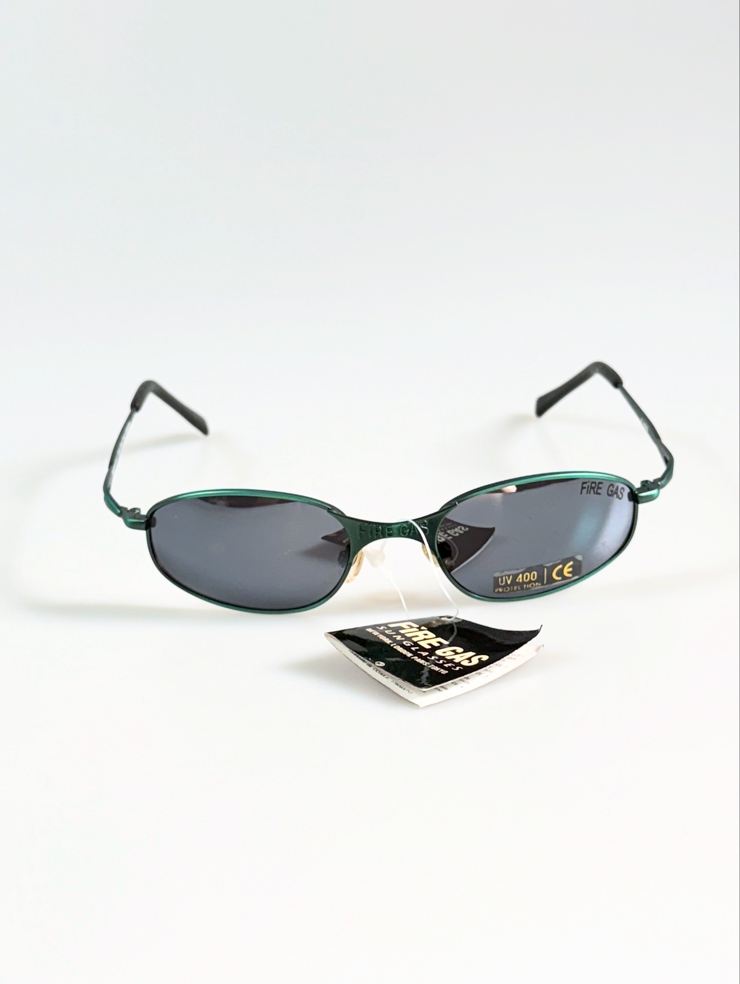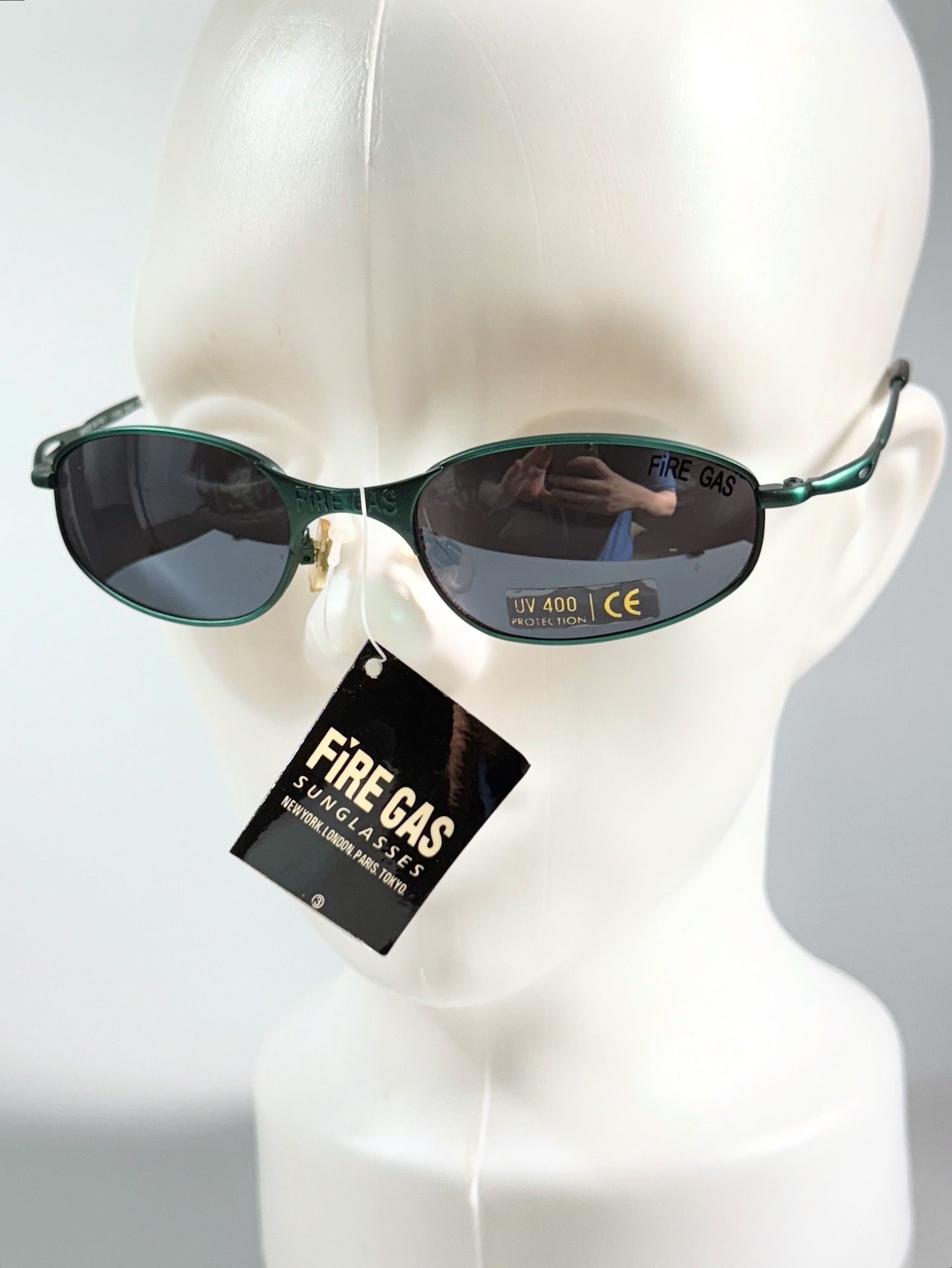 90’s FIRE GAS Green Metallic Oval Sunglasses