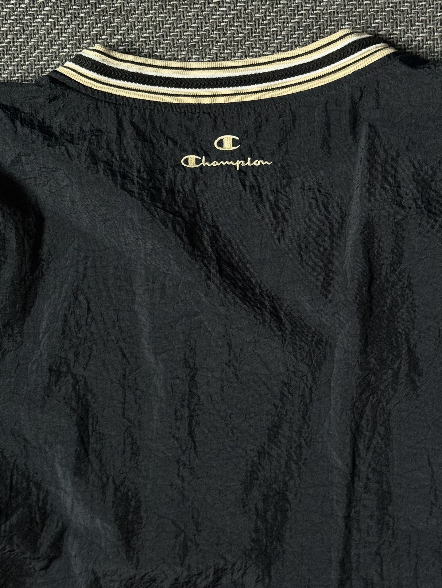 겉감은 100% 나일론 소재로 제작되어 가볍고 바람을 효과적으로 막아주며, 안감에는 폴리에스터 & 코튼 혼방 라이닝(Poly/Cotton blend lining) 이 적용되어 편안한 착용감과 적당한 보온성을 제공합니다. 전면에는 PURDUE 입체 자수 로고가 큼직하게 자리 잡고 있으며, 소매에는 Champion “C” 로고 자수, 뒷면에는 Champion 필기체 로고가 더해져 브랜드 아이덴티티를 강조합니다.