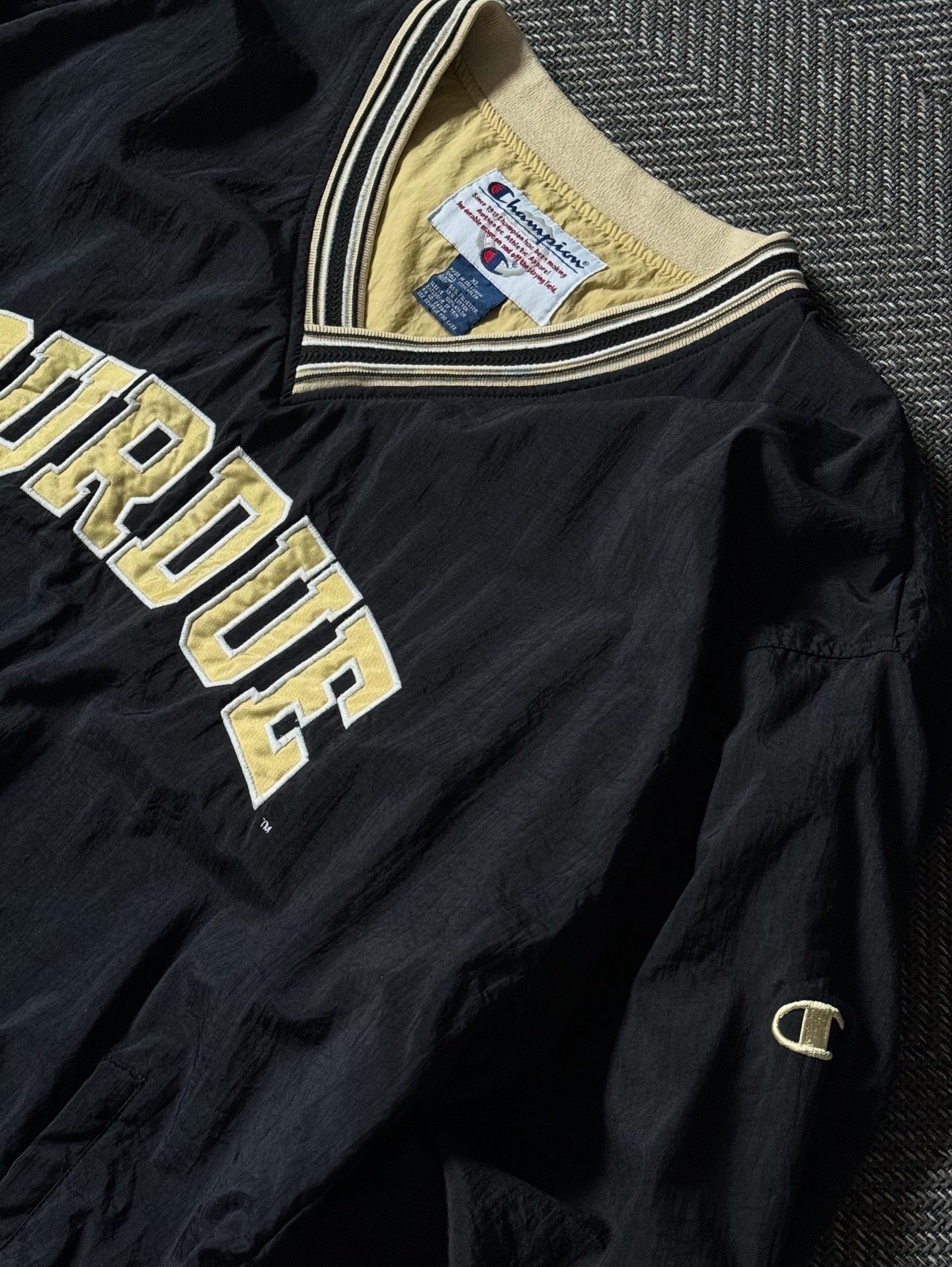 미국 스포츠웨어 브랜드 Champion 의 Authentic Athletic Apparel 라인으로 제작된 퍼듀 대학교(Purdue University) 팀 로고 V넥 풀오버입니다. 90년대 생산된 NCAA 공식 라이선스 아이템으로, 챔피온 특유의 빈티지한 스포츠 무드가 잘 담긴 제품입니다.