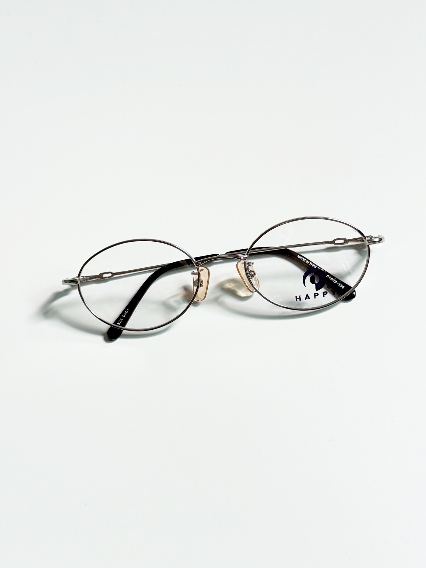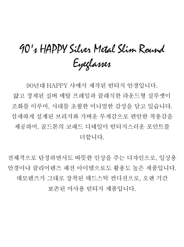 90's HAPPY Silver Metal Slim Round Eyeglasses