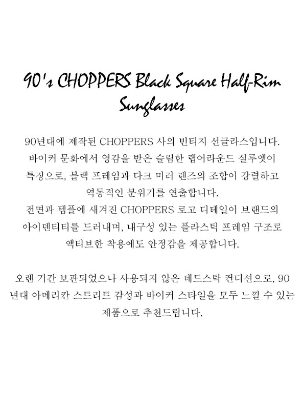 90's CHOPPERS Black Square Half-Rim Sunglasses