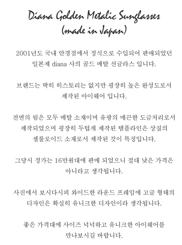 90's DIANA Gold Slim Oval Frame Sunglasses