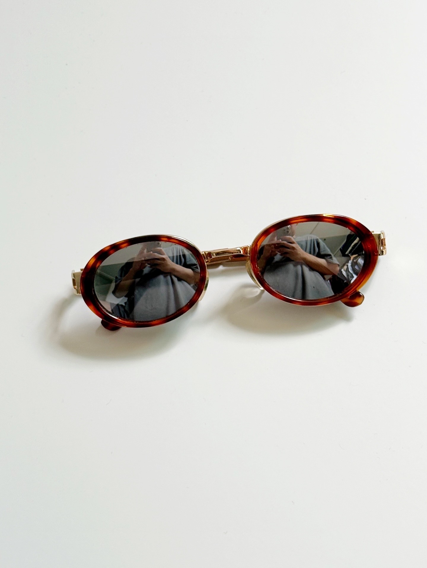 90's JOANNA Gold Leopard Oval Frame Sunglasses