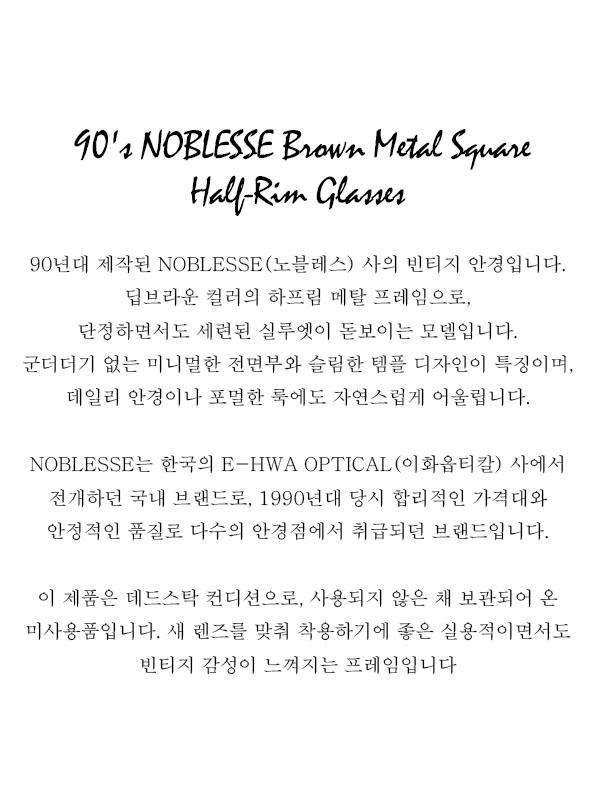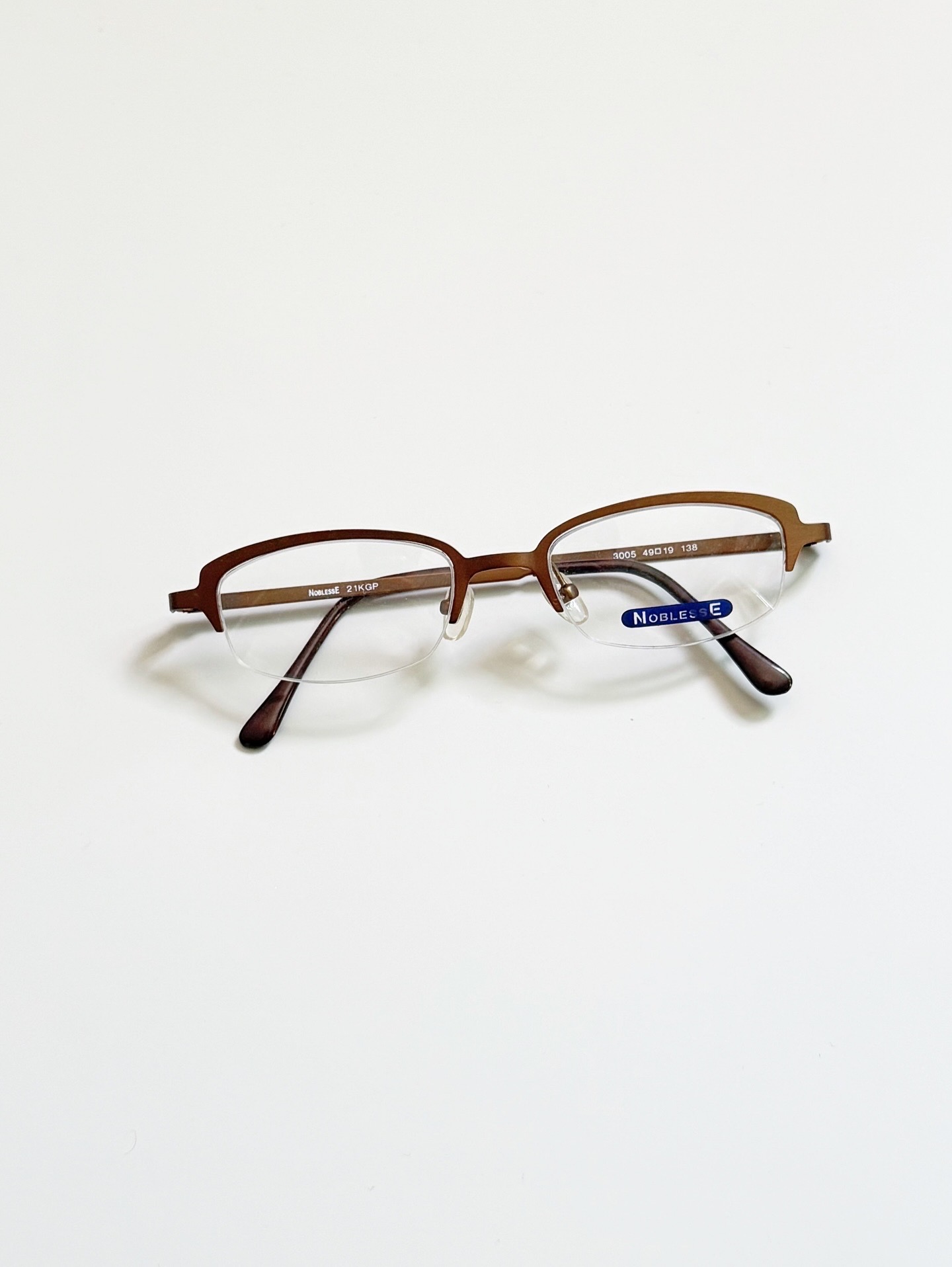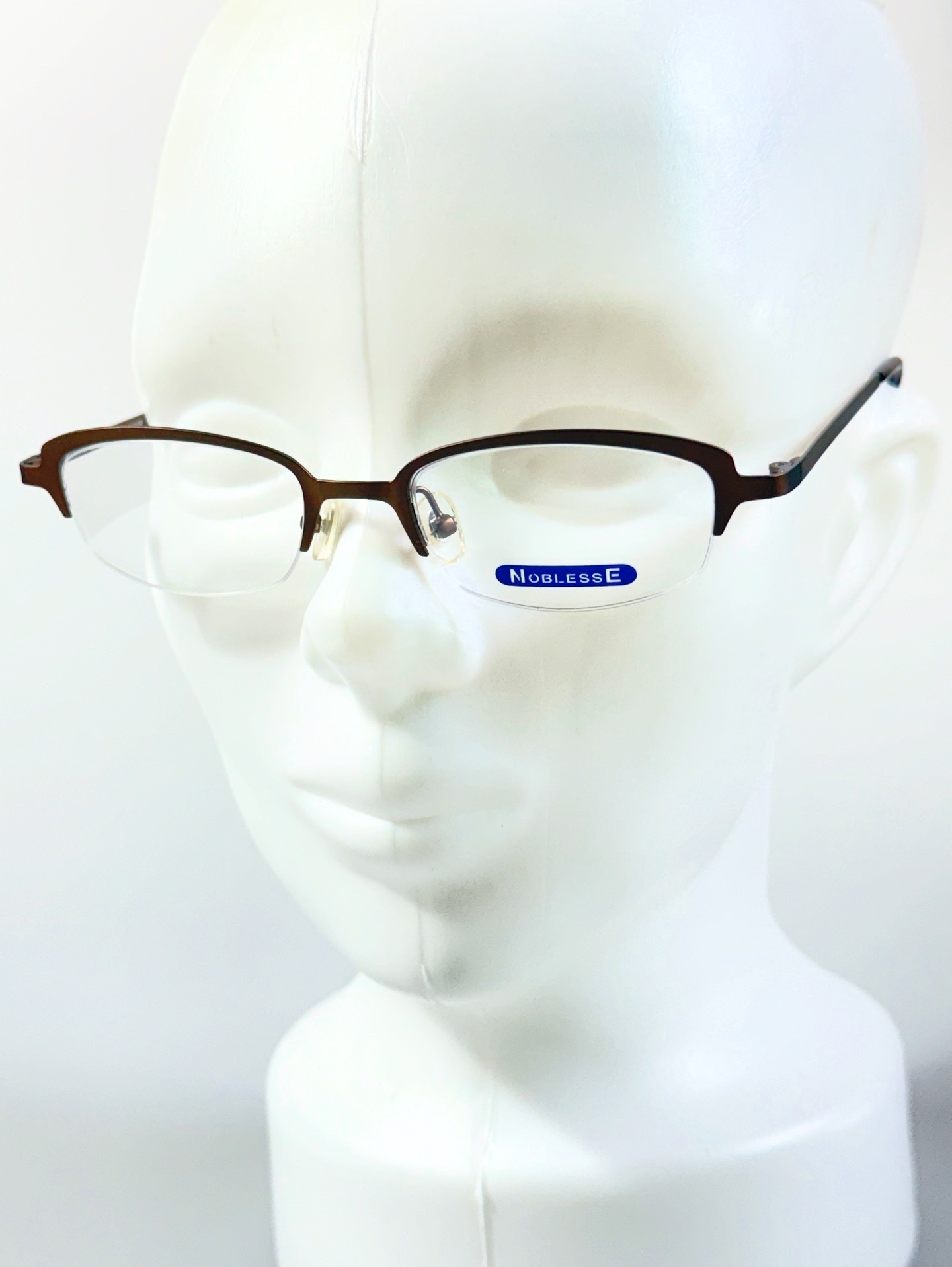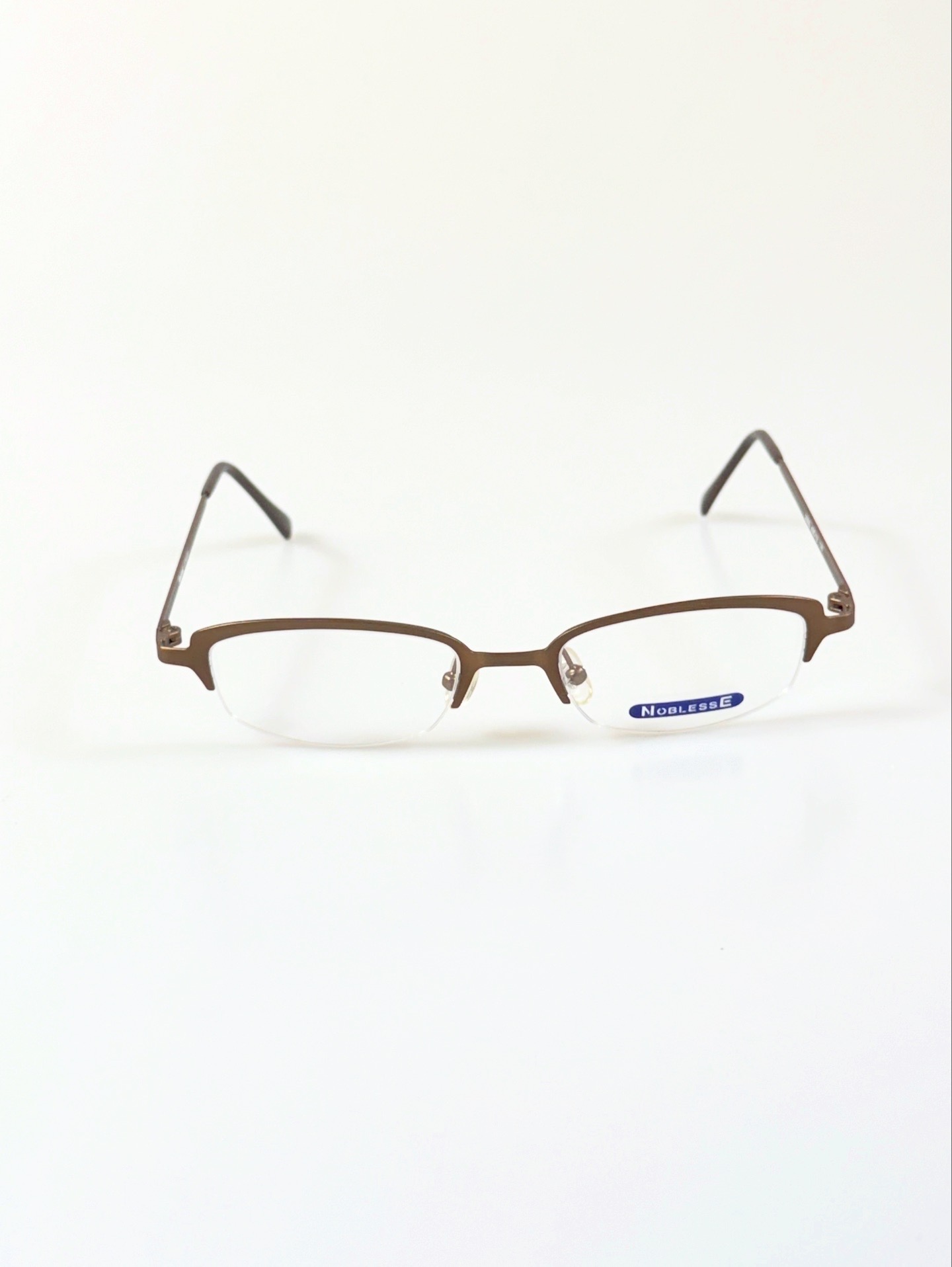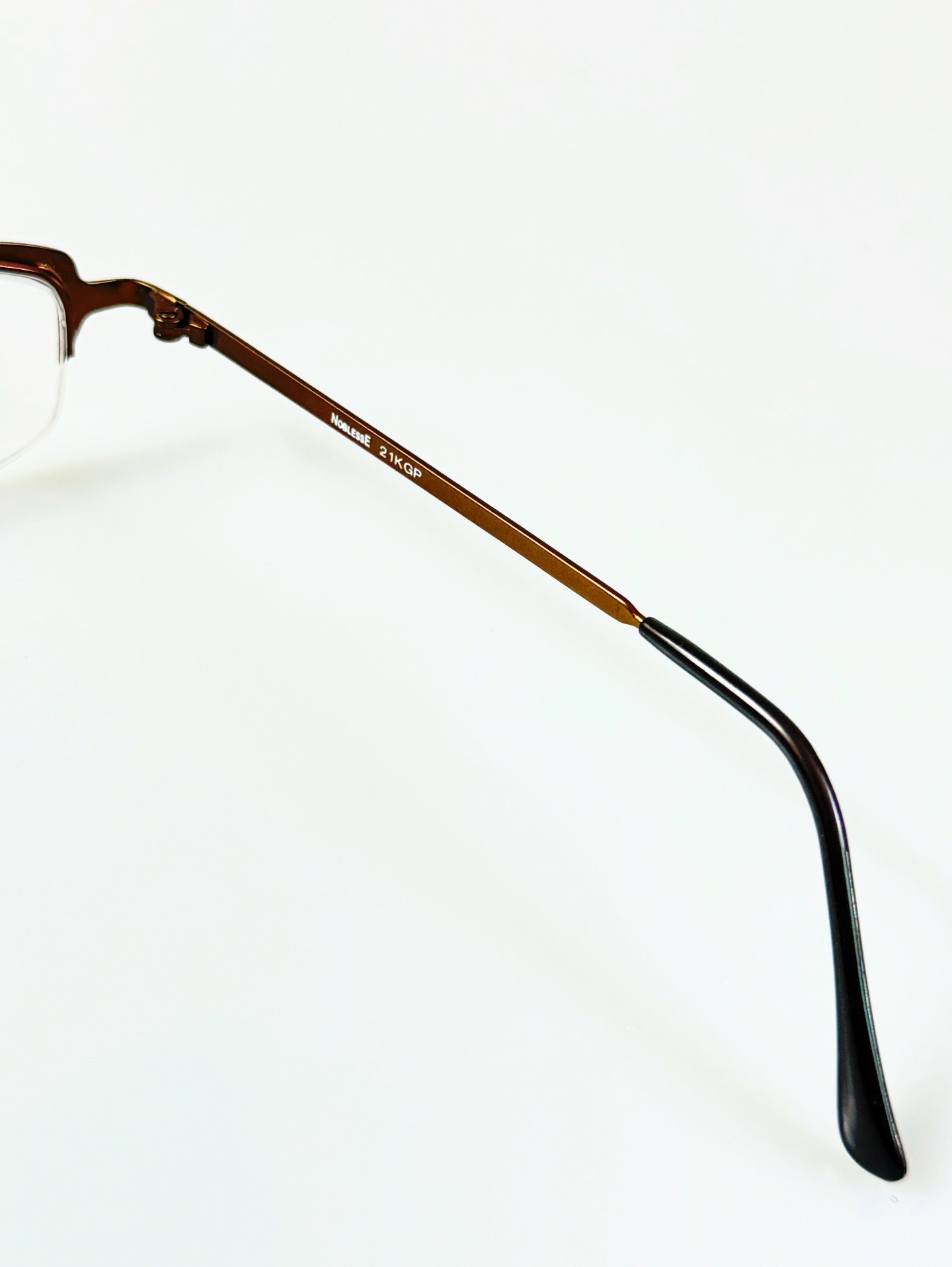 90's NOBLESSE Brown Metal Square Half-Rim Glasses