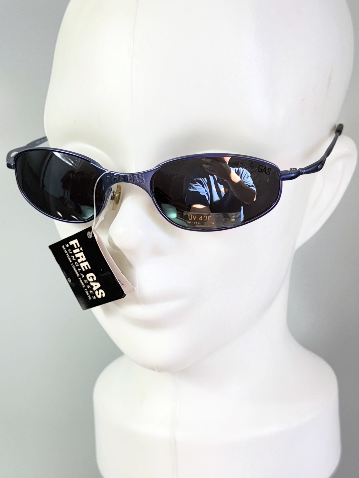 90’s FIRE GAS Blue Metallic Oval Sunglasses