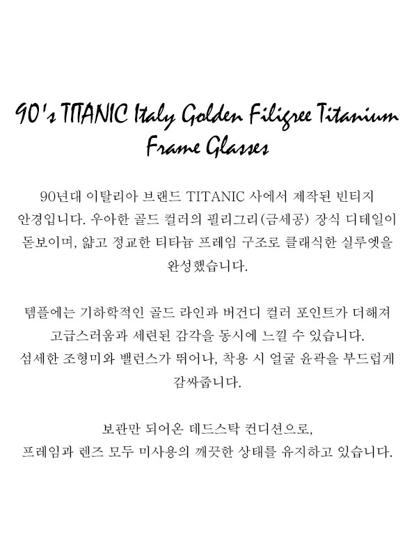90's TITANIC Italy Golden Filigree Titanium Frame Glasses