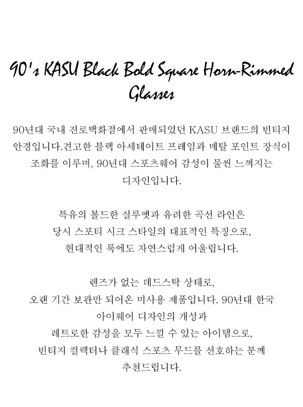 90's KASU Black Bold Square Horn-Rimmed Glasses